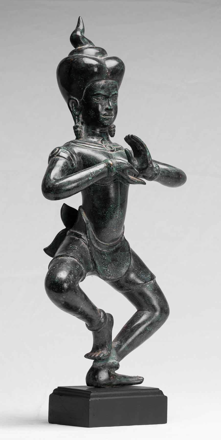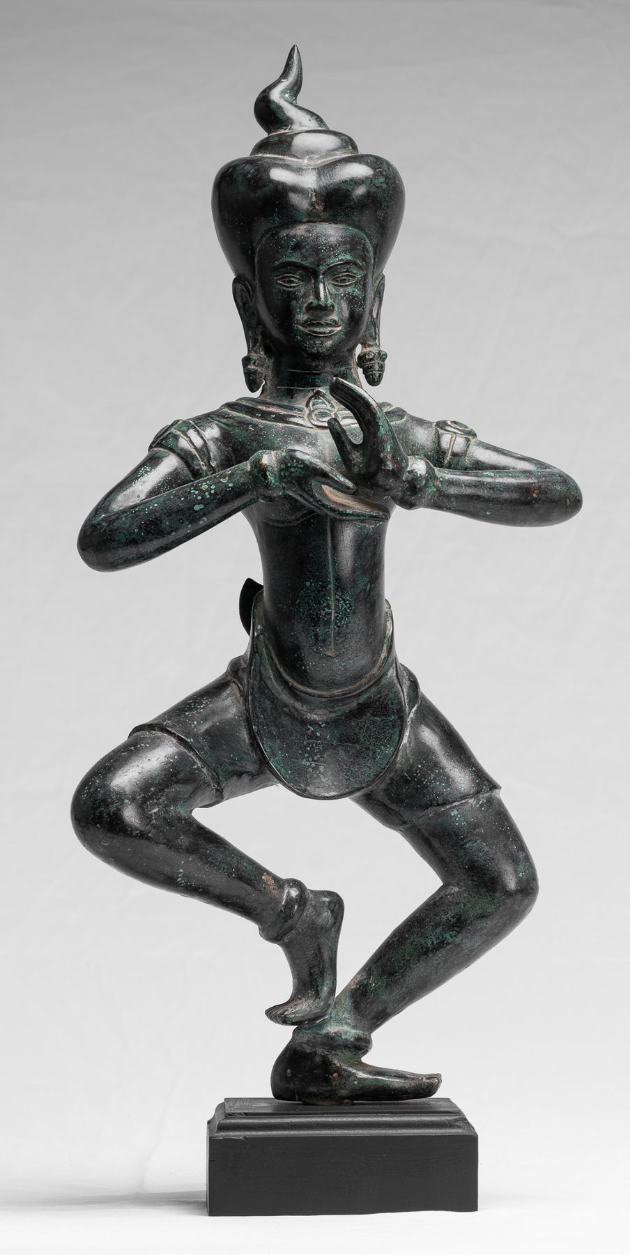 Antike tanzende Apsara- oder Engelsstatue aus Baphuon-Bronze im Khmer-Stil – 54 cm.