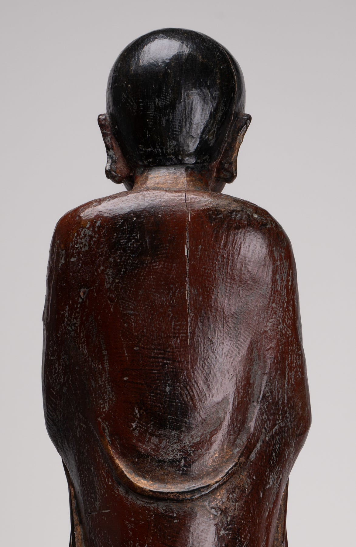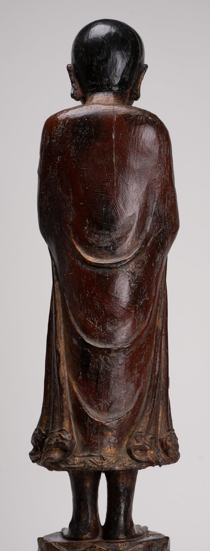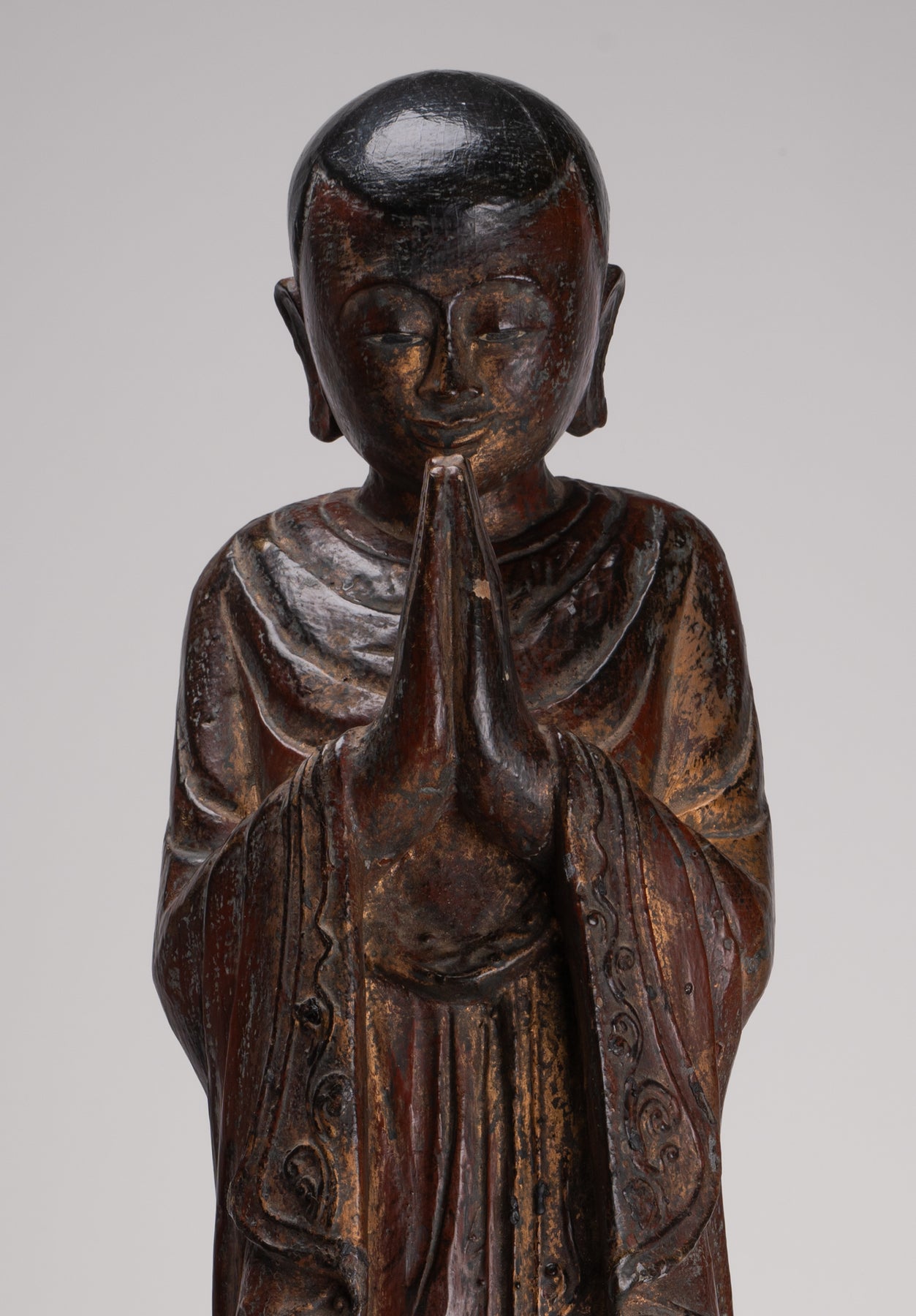 Antike birmanische Stil Stehende Holzanbieter Mandalay Mönch Statue - 76 cm/30 "