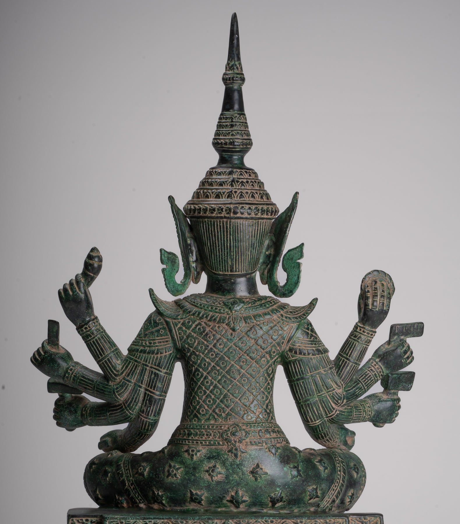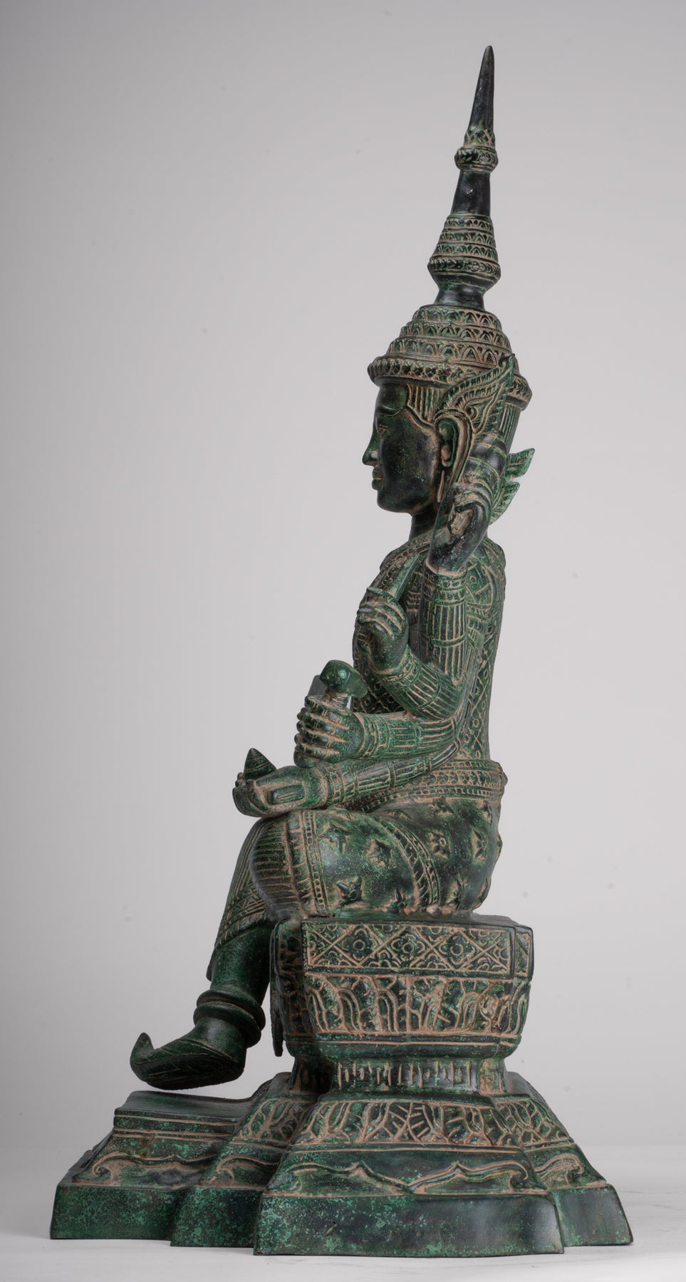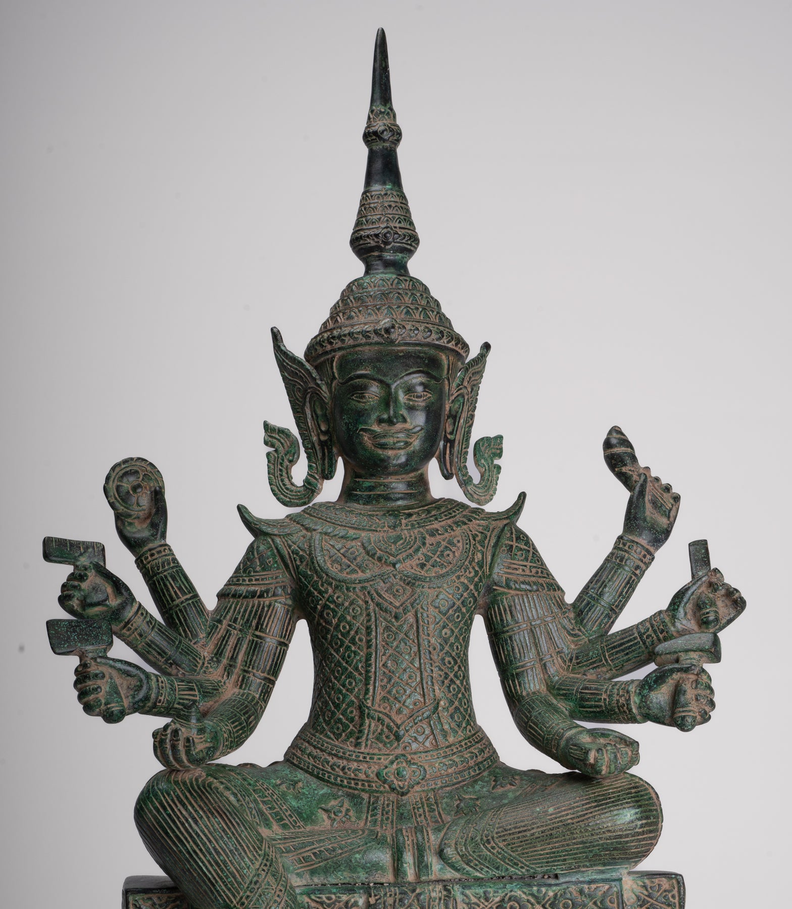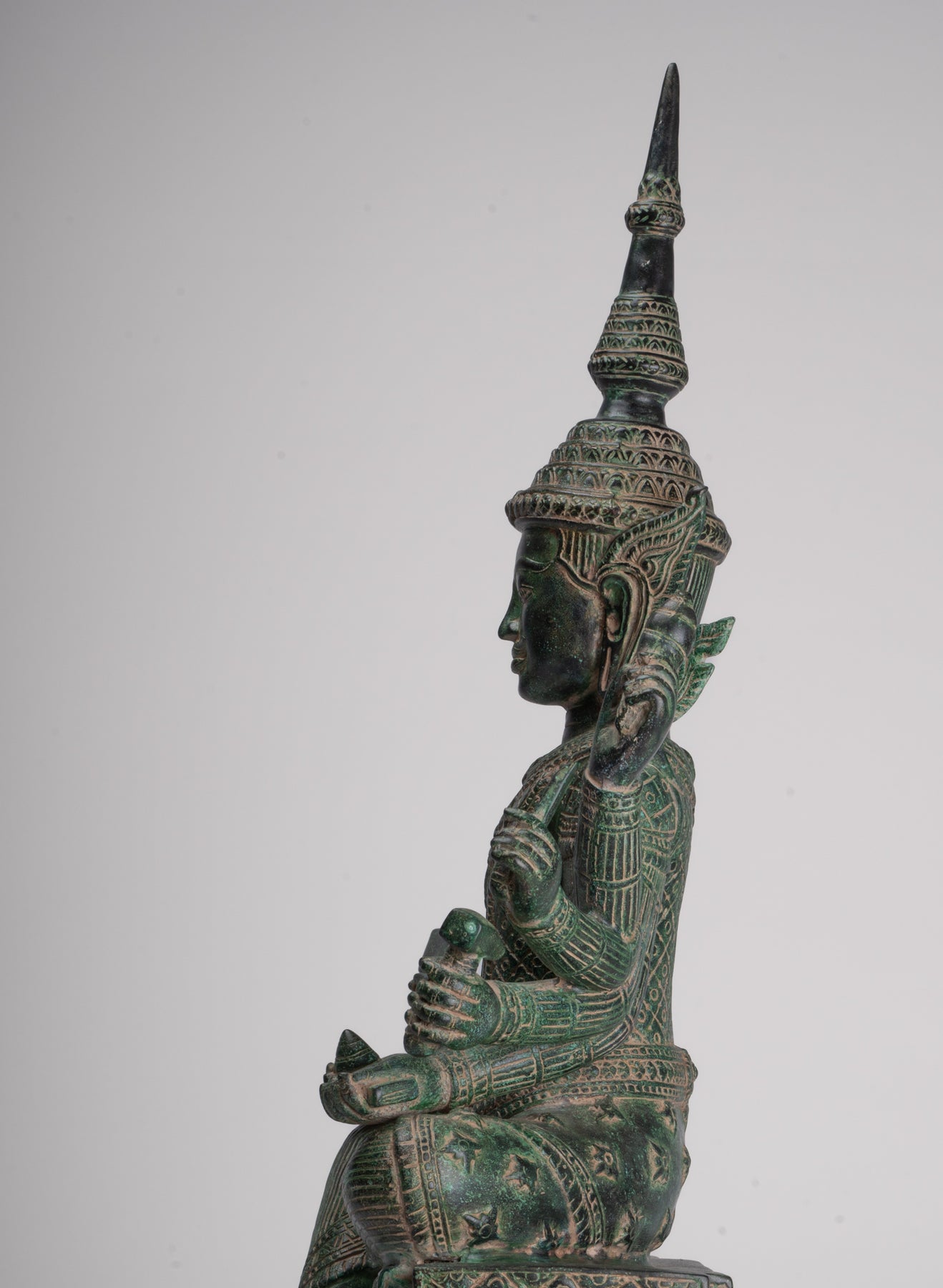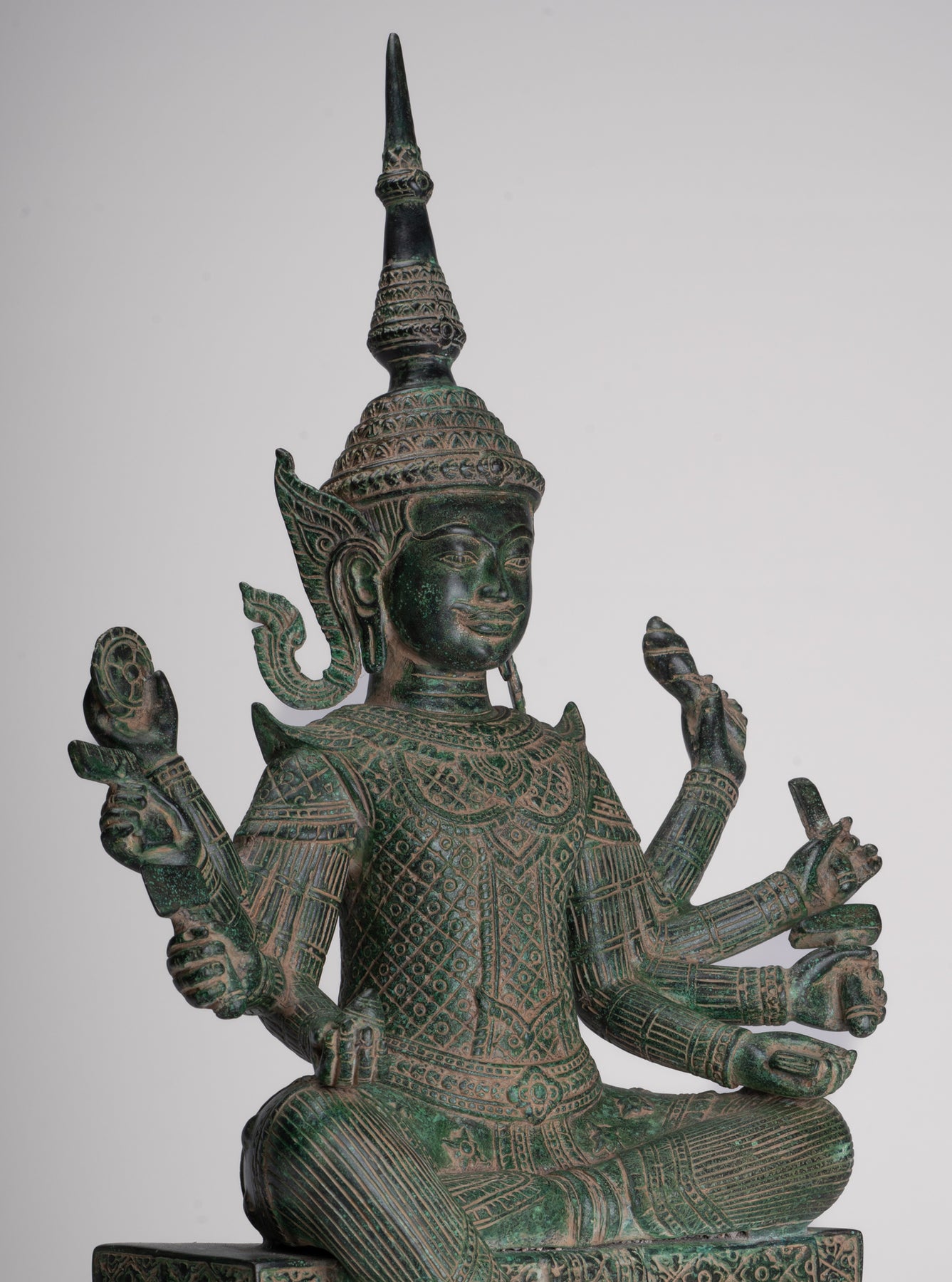 Antike sitzende Vishvakarman-Statue aus Bronze im Khmer-Stil – göttlicher Architekt – 59 cm.