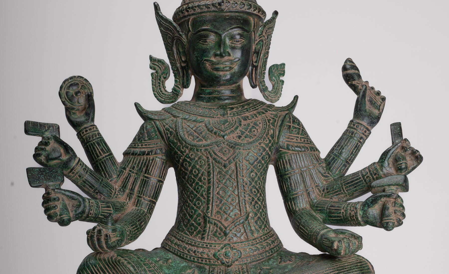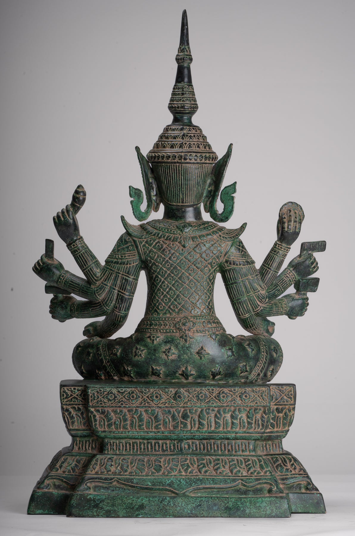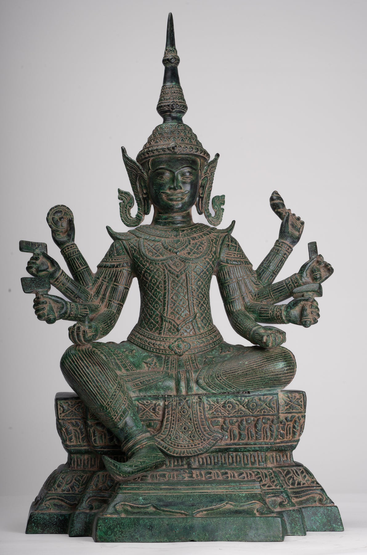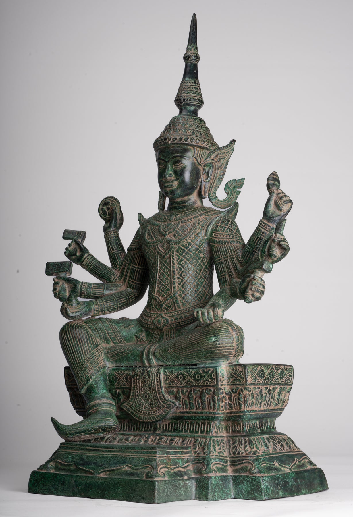 Antique Khmer Style Bronze Seated Vishvakarman Statue - Divine Architect - 59cm/24"