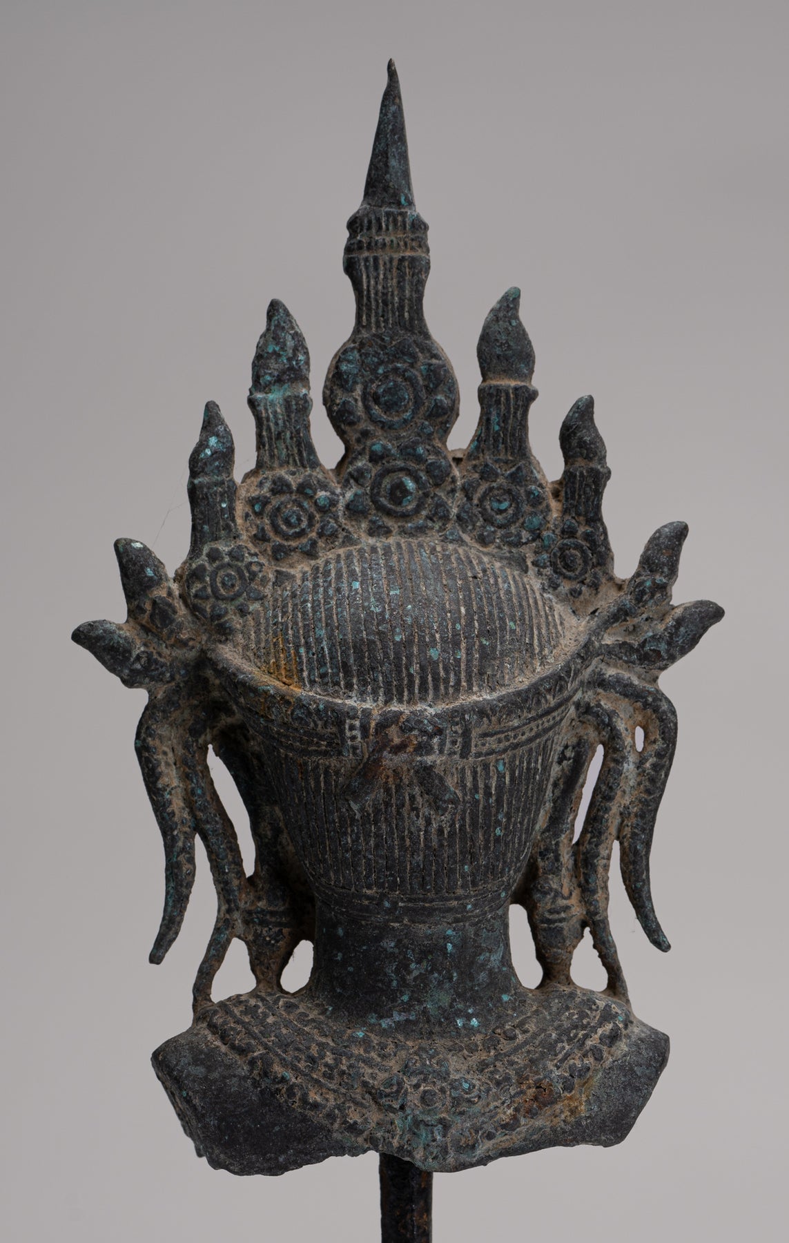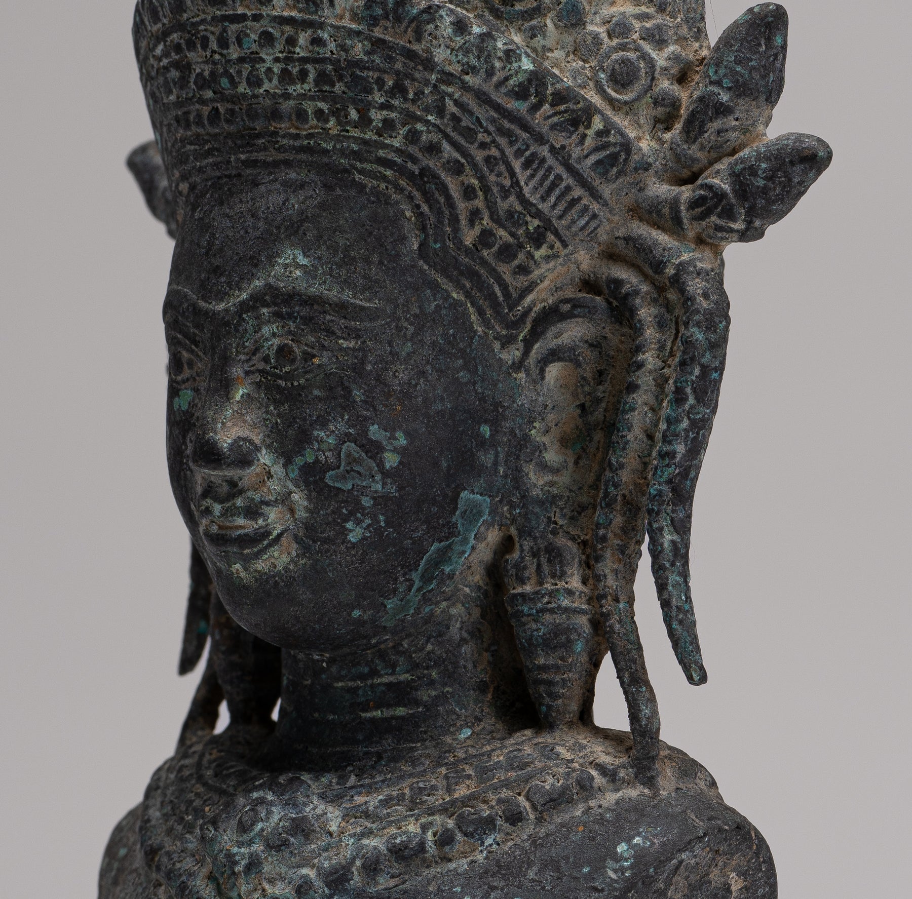 Ein seltener und ungewöhnlicher antiker Khmer -Bronze -Apsara oder himmlischer Engelsdrumpf im Angkor Wat -Stil.