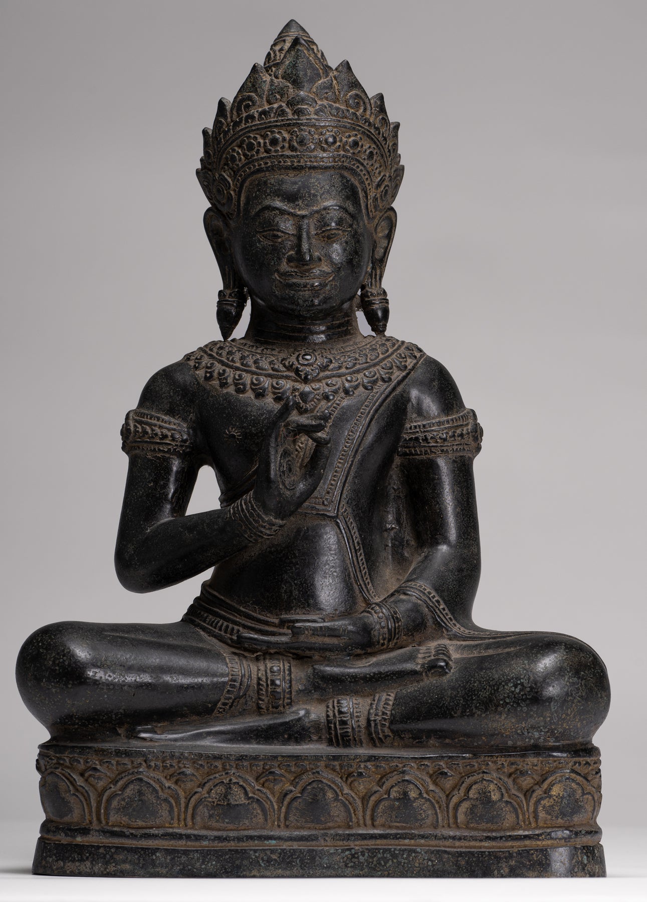Buddha Statue - antiker birmanischer Stil Bronze sitzend Unterricht Shan Buddha Statue - 39 cm/16 "