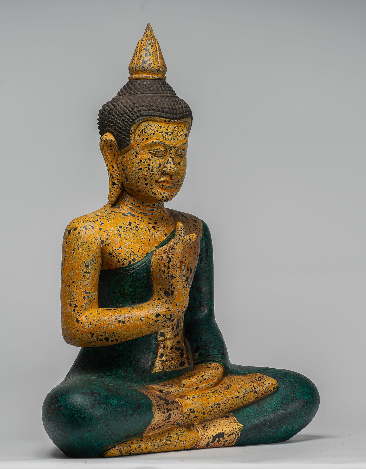 • Buddha -Statue - antiker Khmer -Stil Kambodscha Sitzen Holz Buddha Statue Unterricht Mudra - 54 cm/22 "