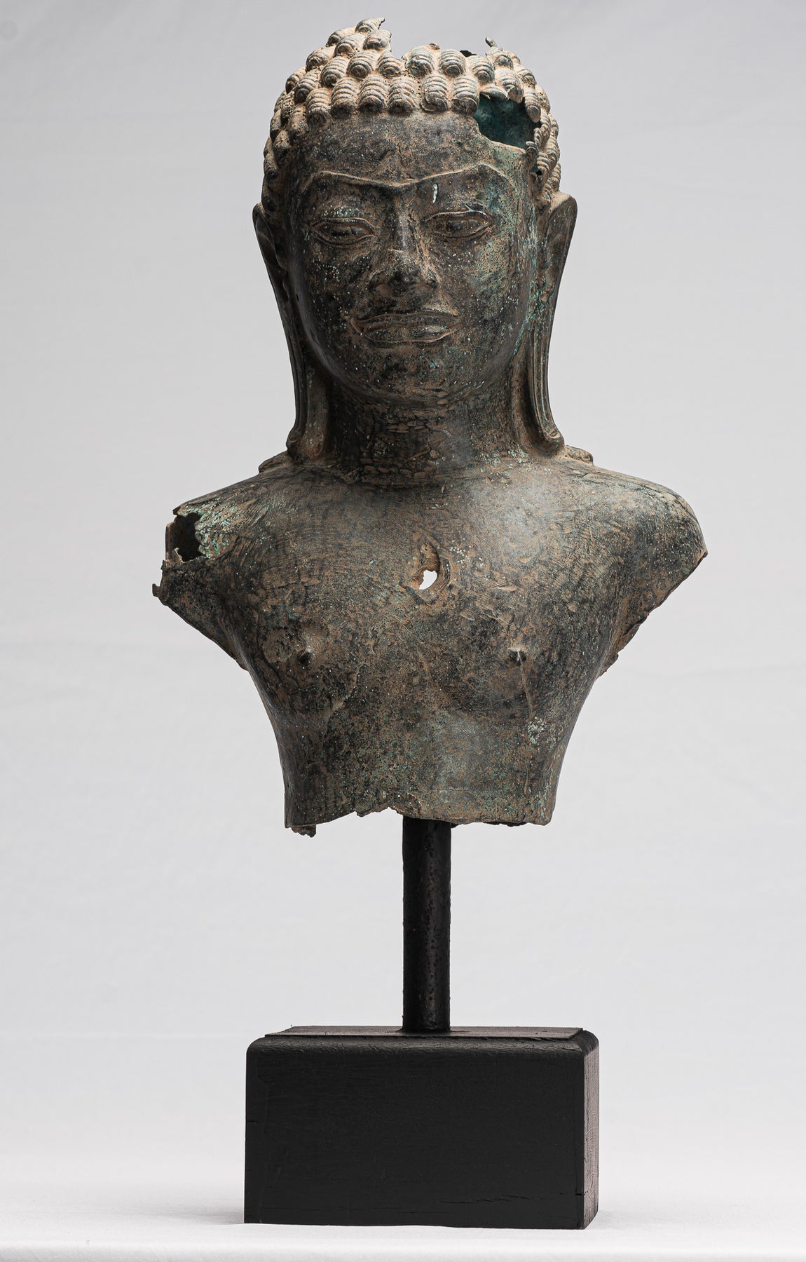 • Antike Khmer -Stil montierte Bronze Phnom da Buddha Kopfstatue - 54 cm/22 "