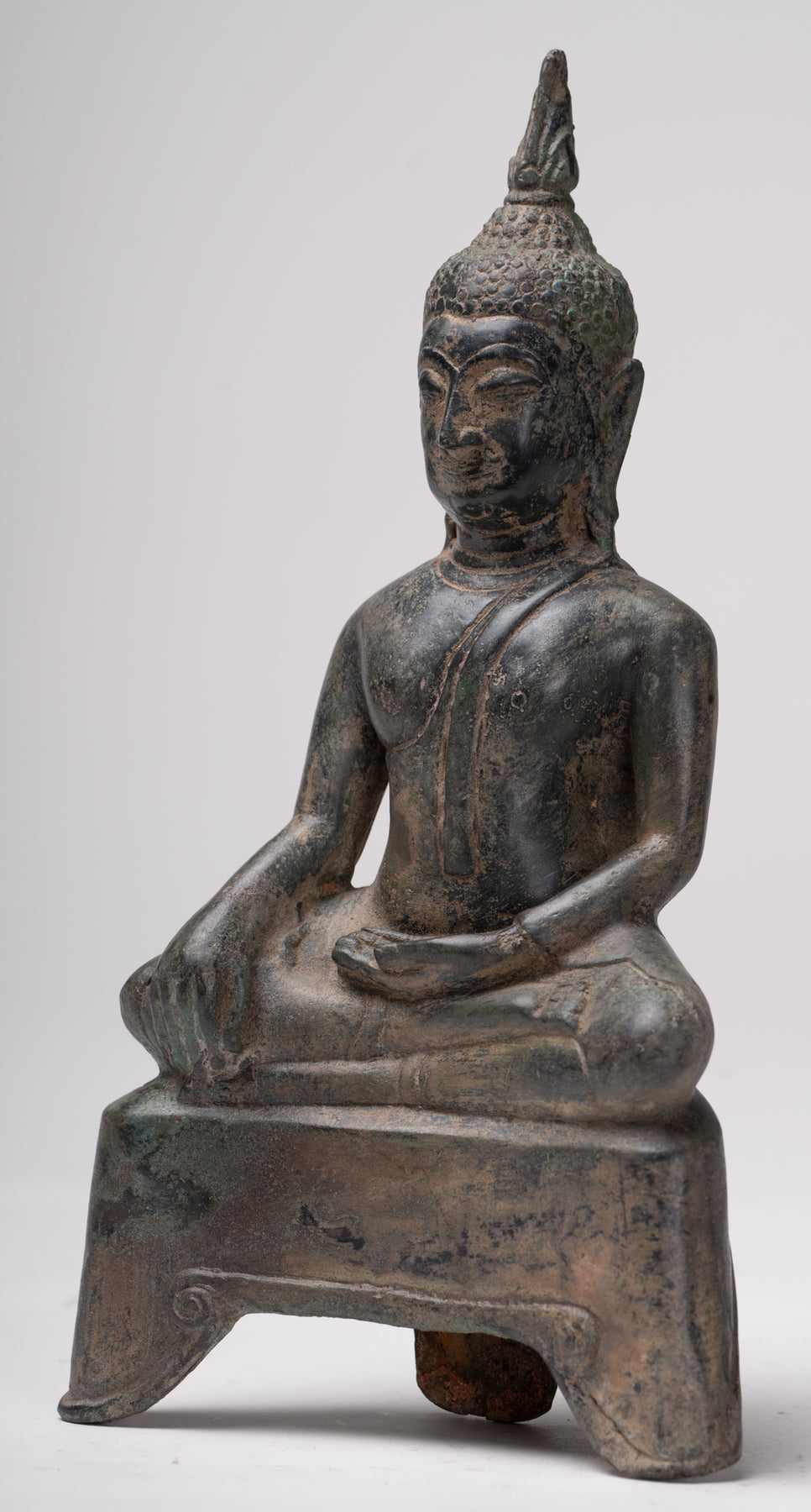 Ein throner thailändischer Bronze Buddha Shakyamuni im Tanga -Stil.