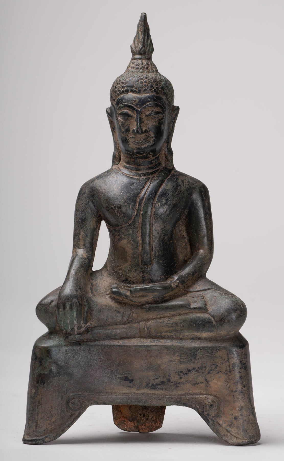 Buddha Statue - Antique Laos Style Bronze Enlightenment Buddha Statue - 29cm/12"