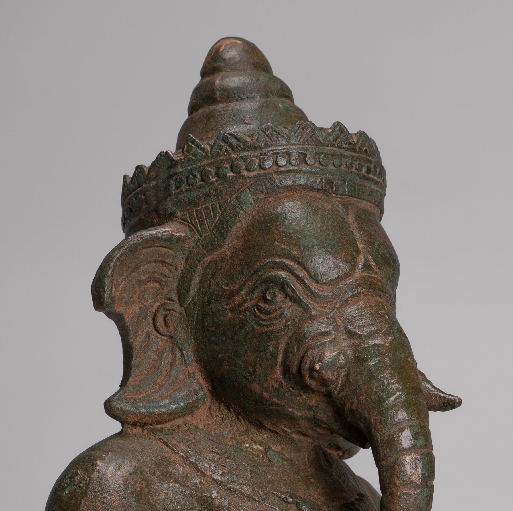 • Antike kniende Ganesha-Statue aus Bronze im thailändischen Stil – 34 cm.