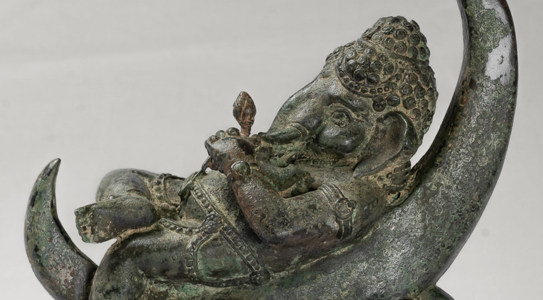Historisch gesehen sind Ganeshas früheste Formen in Indien waren eng mit Fruchtbarkeit und Überfluss verbunden. Im Laufe der Zeit weitete sich seine Rolle aus und er wurde weithin als Beseitiger von Hindernissen, Herr der Anfänge und Schwellen und als mächtiger Beschützer neuer Unternehmungen verehrt. Heute wird er auch als Förderer des Lernens, der Künste und des verfeinerten Intellekts verehrt, sodass seine Anwesenheit in Studienräumen, Ateliers und Orten kreativer Arbeit willkommen ist.