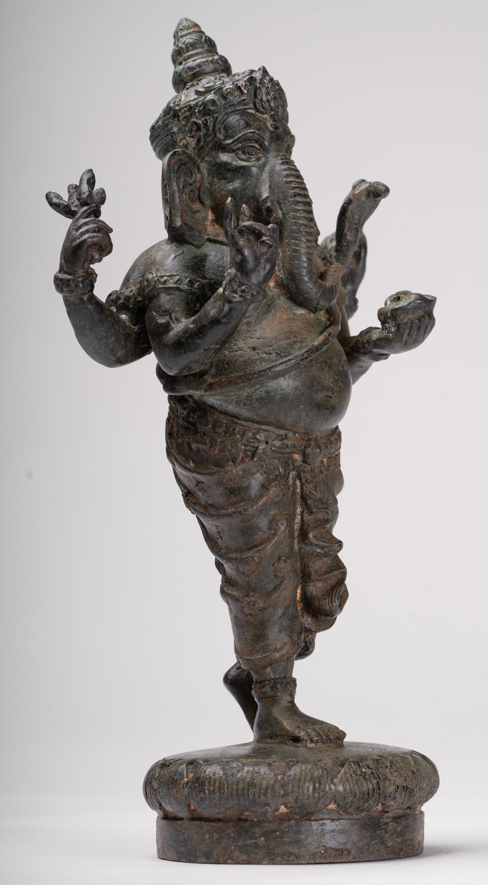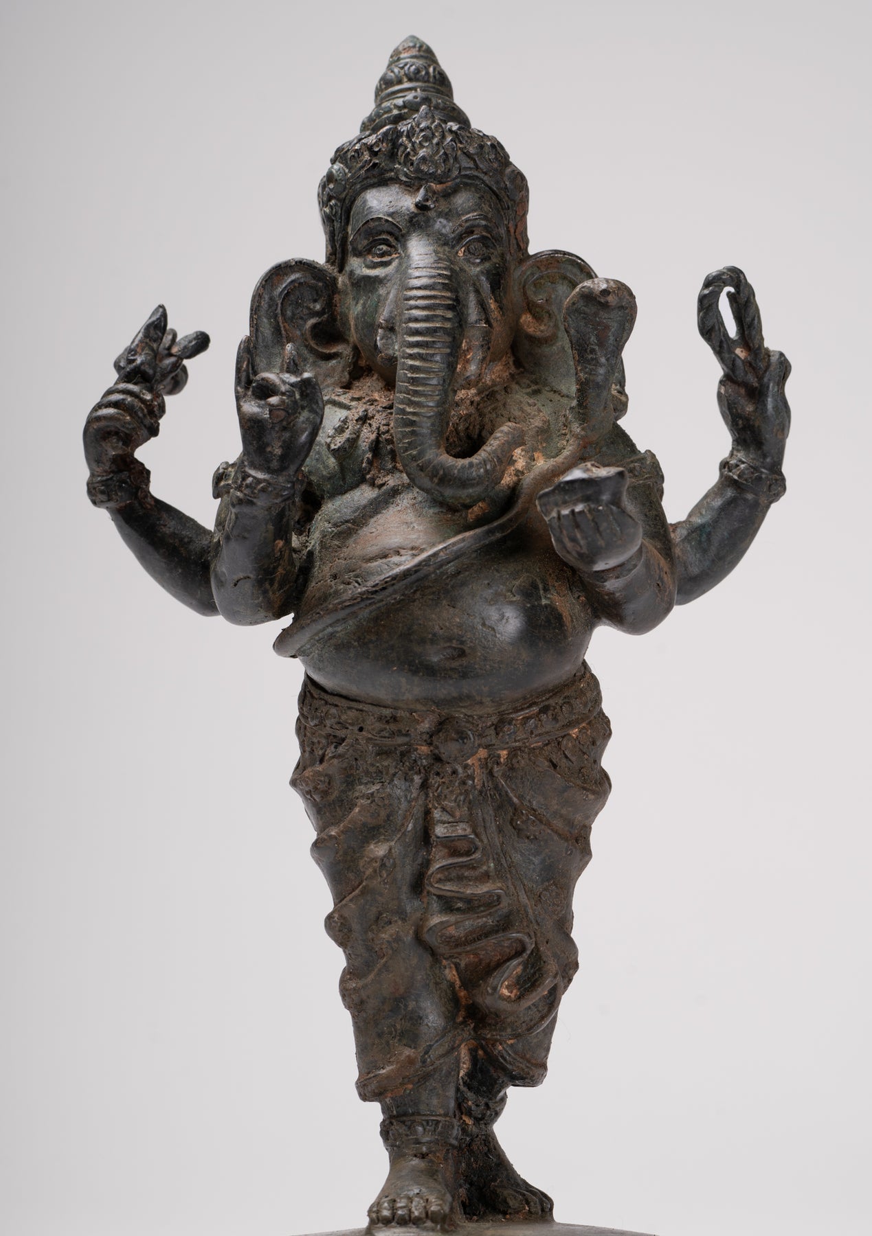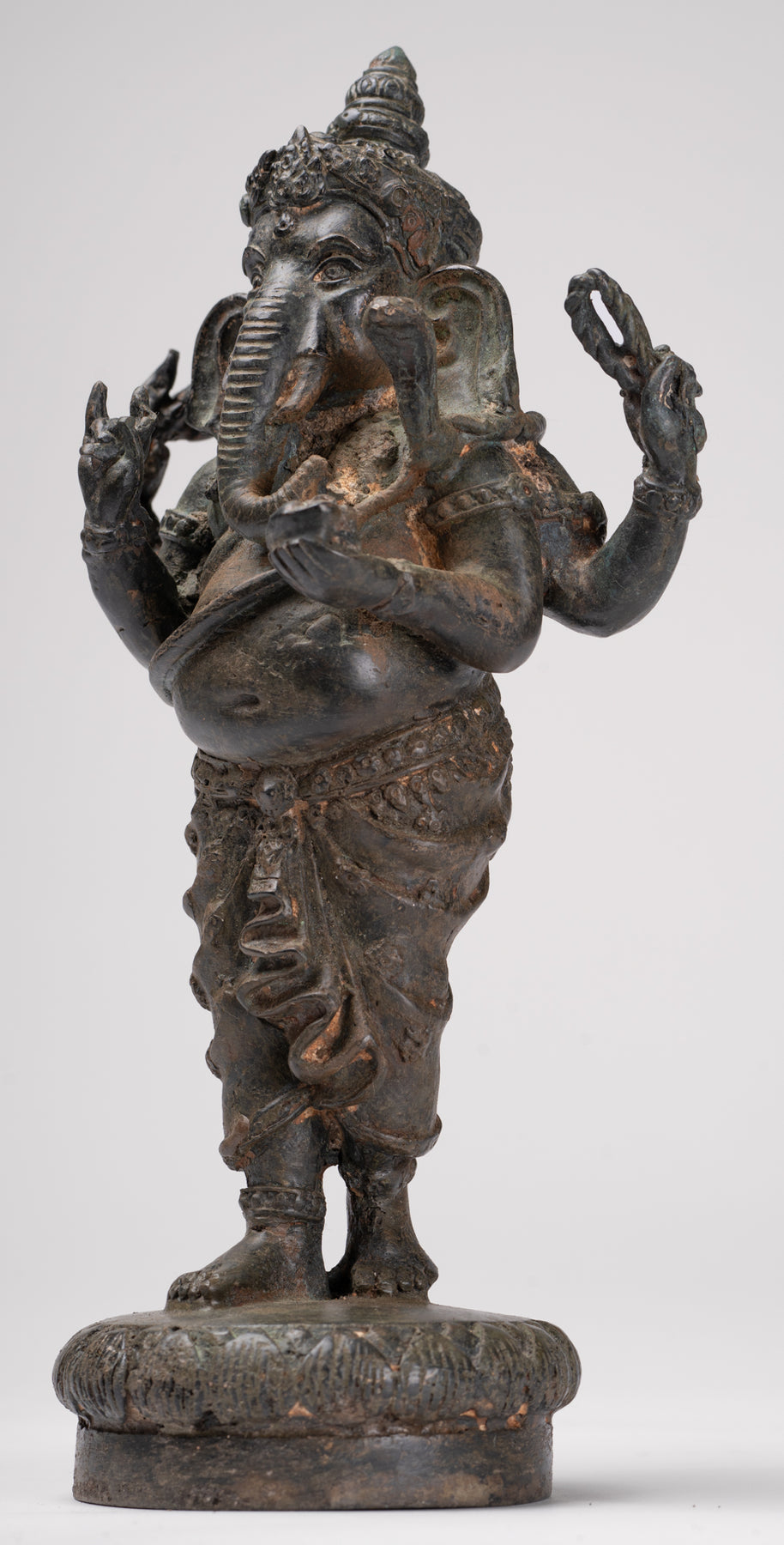 • Antike thailändische Bronze 4 -Arm Ganesha Statue - 26 cm/10 "