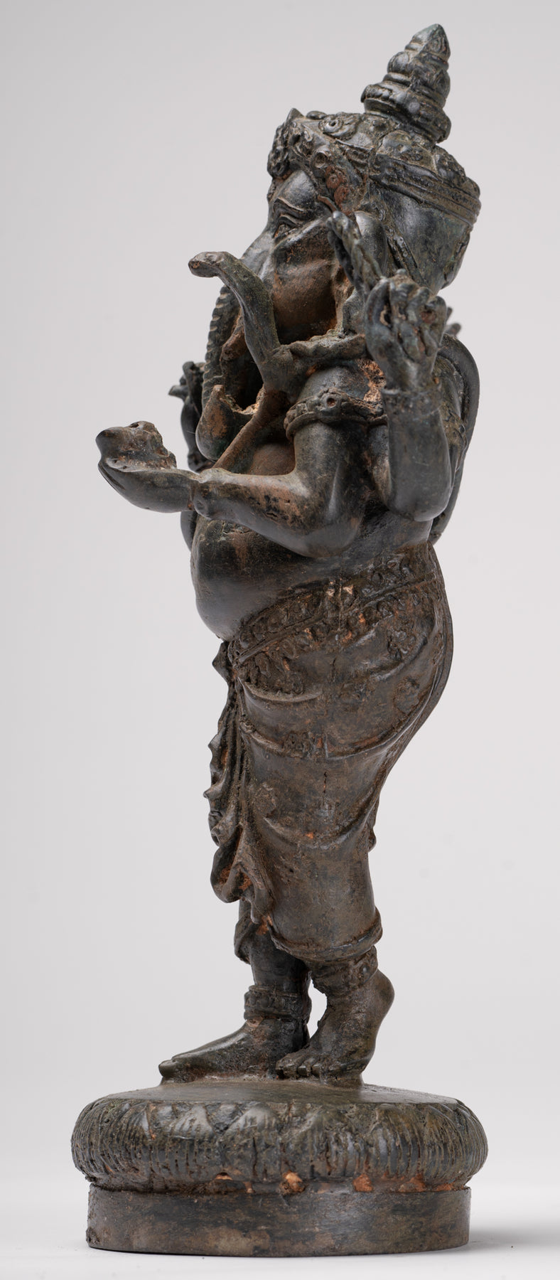 Ganesha Statue - Antique Thai Style Bronze Standing 4-Arm Ganesha Statue - 26cm/10"