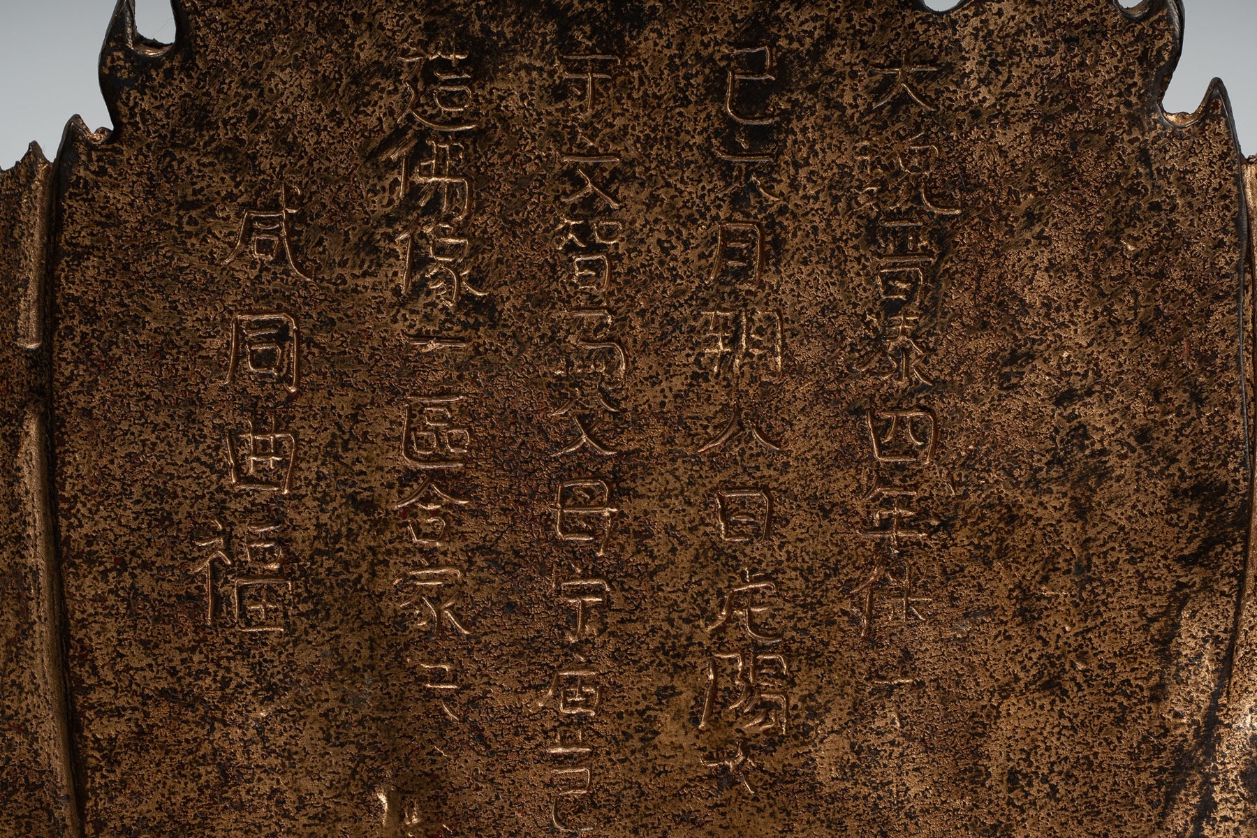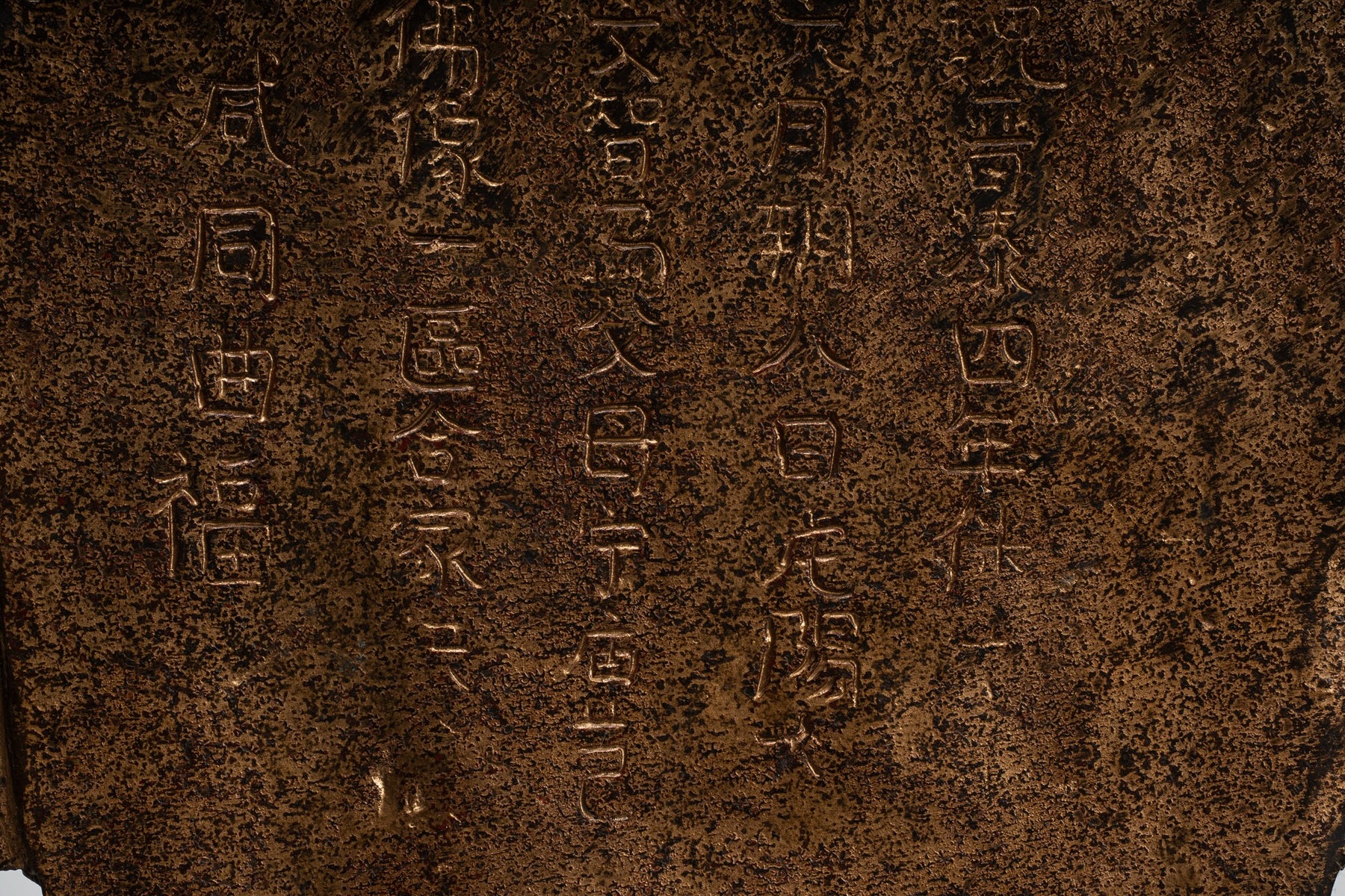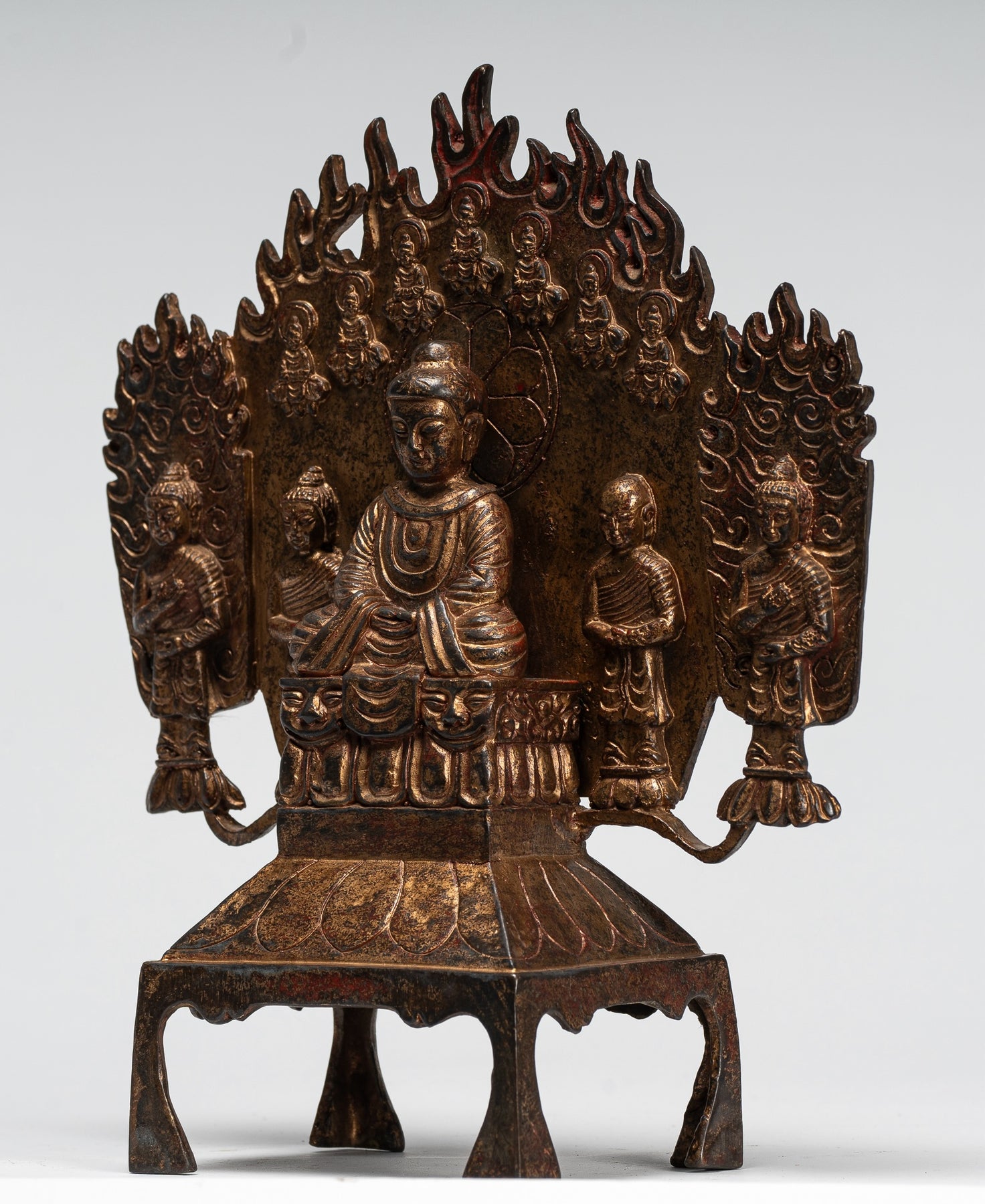 Eine einzigartige und schöne meditierte meditierende antike meditation amida buddha im ökologischen Periodenstil. Der Amida Buddha ist von vier stehenden Akolythen und sieben sitzenden Buddha über dem Kopf von Amida umgeben.