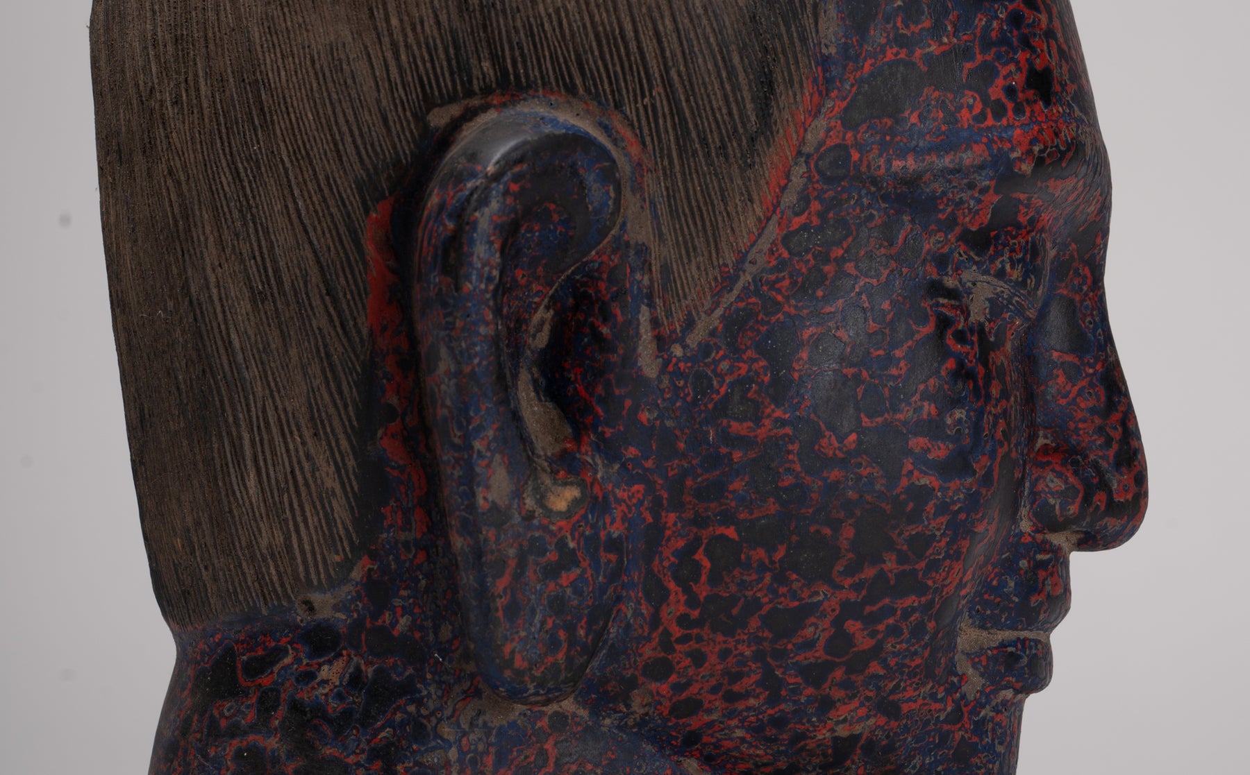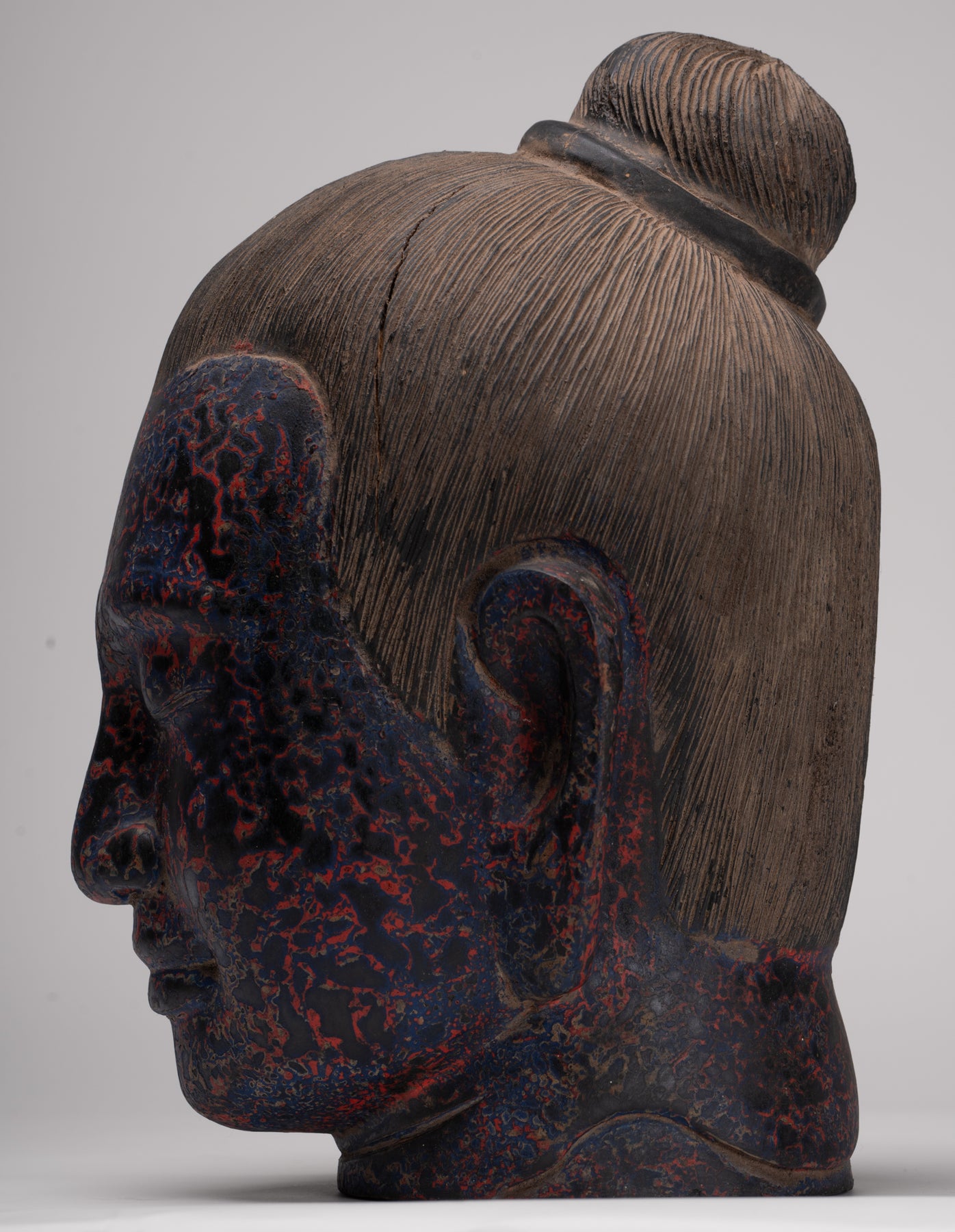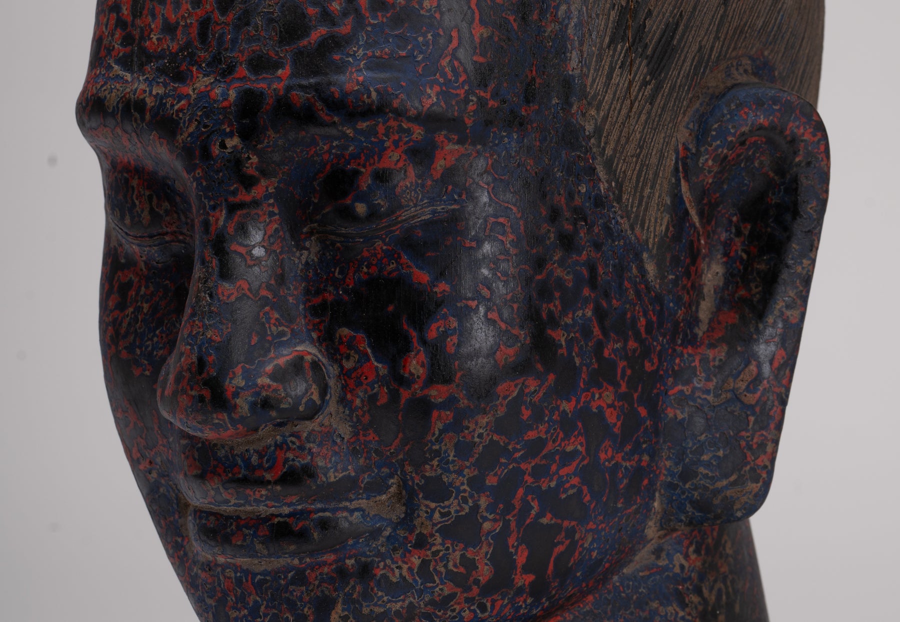 Jayavarman Statue - Antike Khmer -Stil Holz Jayavarman VII Kopfstatue - 29cm/12 "