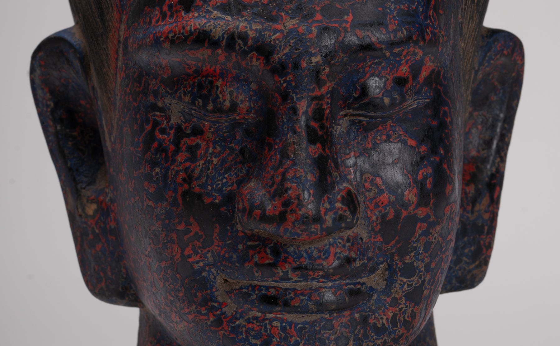 • Antike Khmer -Stil Holz Jayavarman VII Kopfstatue - 29cm/12 "