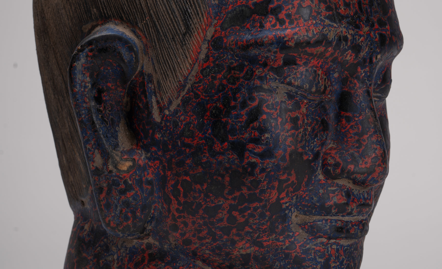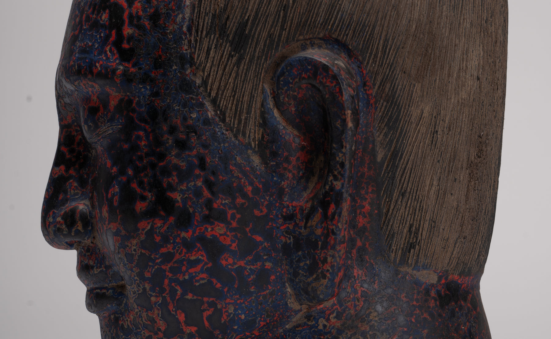 Jayavarman Statue - Antique Khmer Style Wood Jayavarman VII Head Statue - 29cm/12"