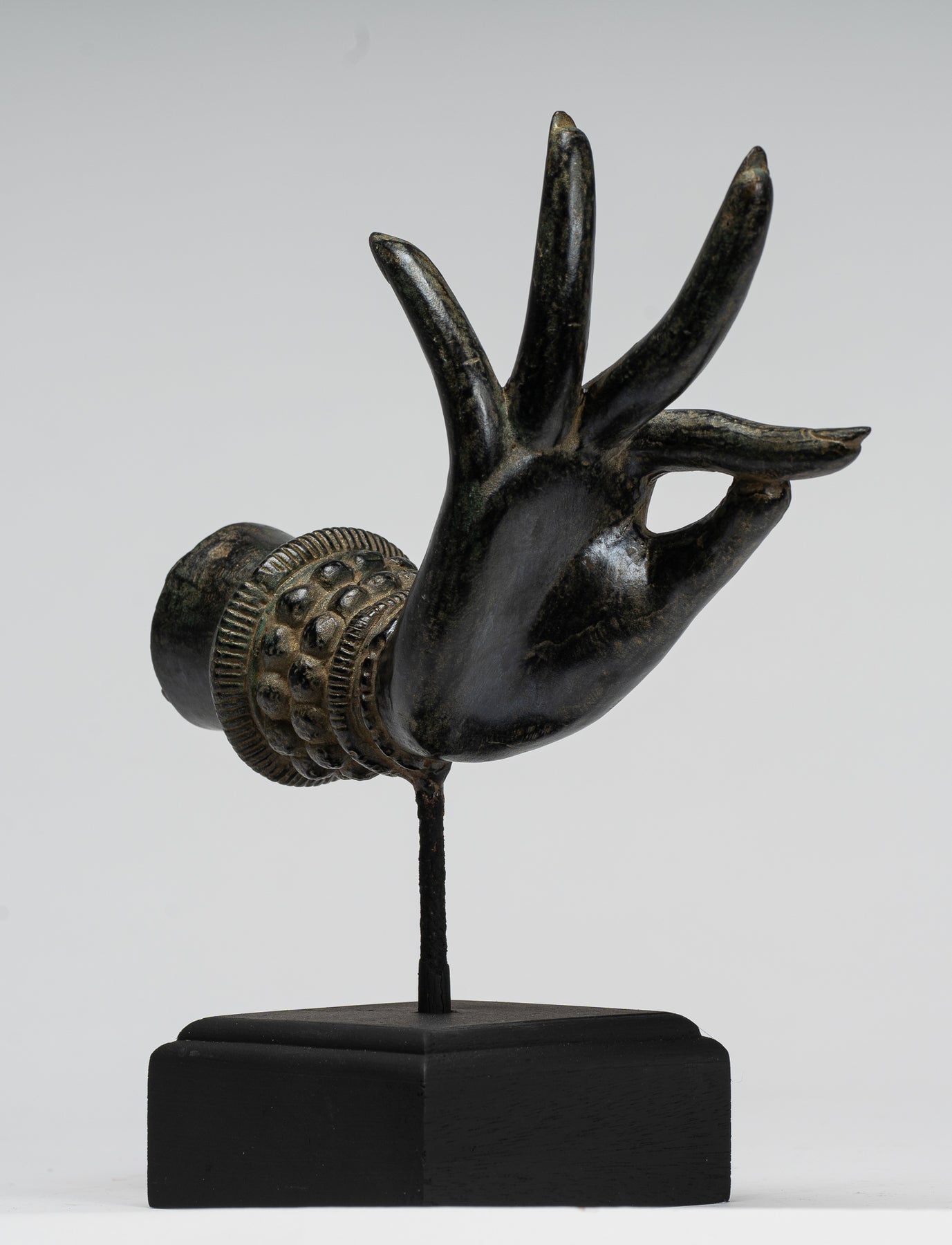 Mounted Antique Thai Style Southeast Asia Bronze Thai Teaching Hand - 24cm/10"