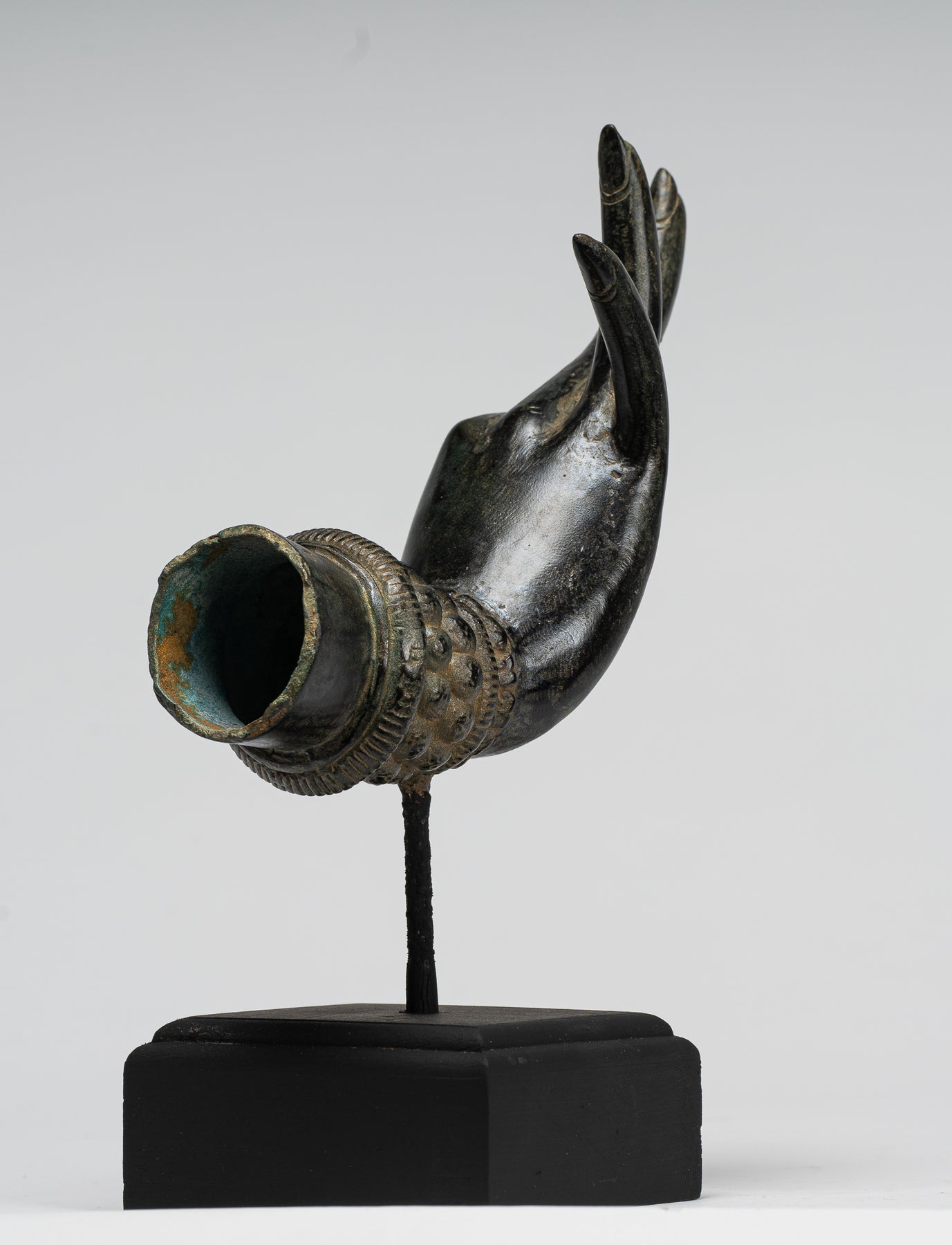 • Antiker thailändischer Stil, Südostasien, bronzemontierte thailändische Hand – 24 cm.