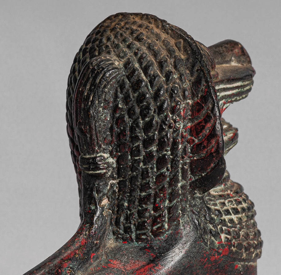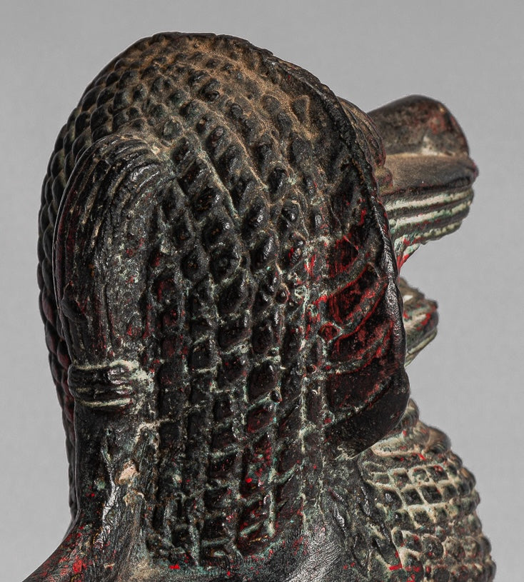 Jede Statue wird in der Runde gegossen, um einen kräftigen Körper mit einer kunstvollen Coiffure mit vollen Lippen und mandelförmigen Augen mit eingeschnittenen Pupillen unter sanft geschwungenen Brauen zu zeigen. Das Gießen eines jeden Stücks ist schön, wie man in den feinen Details der Gesichter sehen kann. Das Detail wird perfekt gerendert.