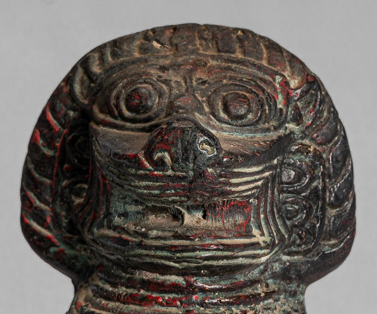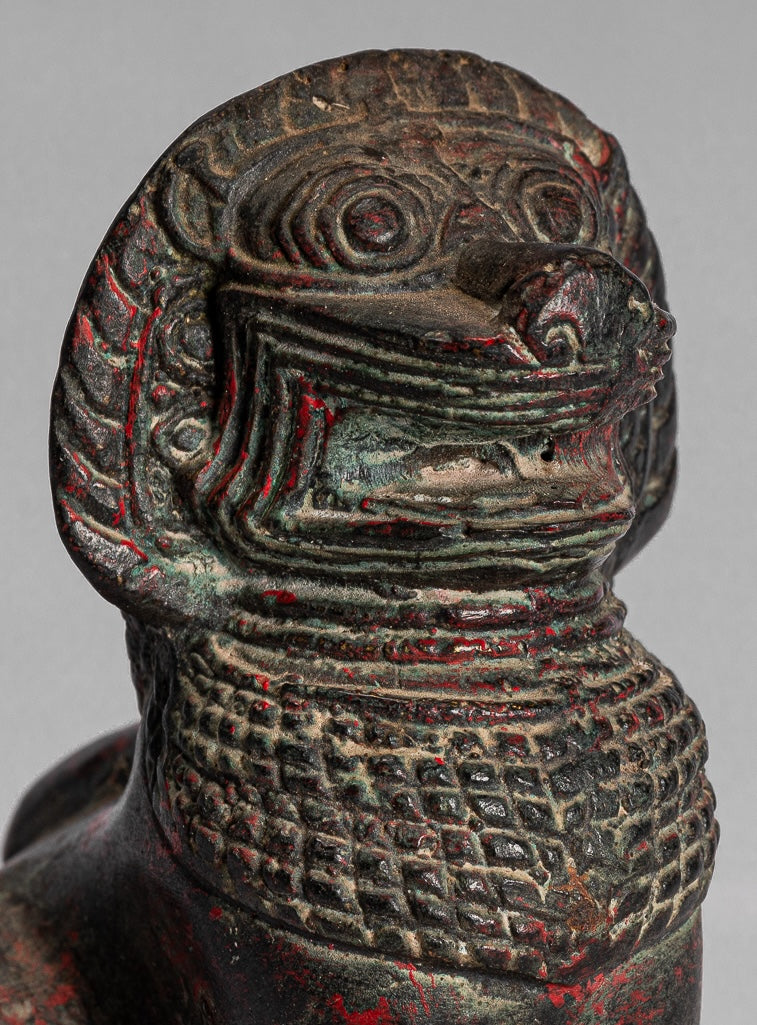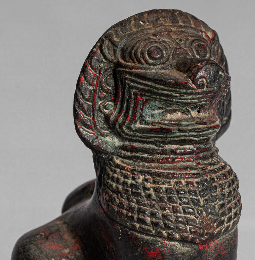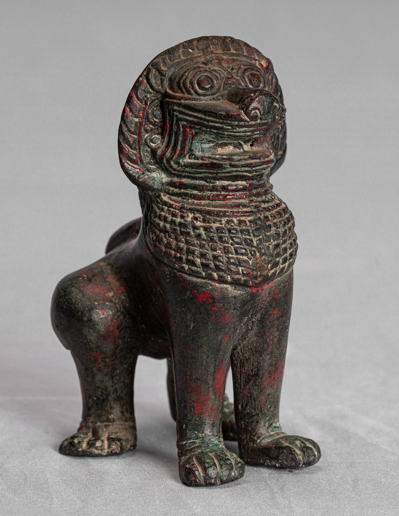 Temple Lion - Antique Khmer Style Bronze Standing Temple Guardian or Lion - 12cm/5"