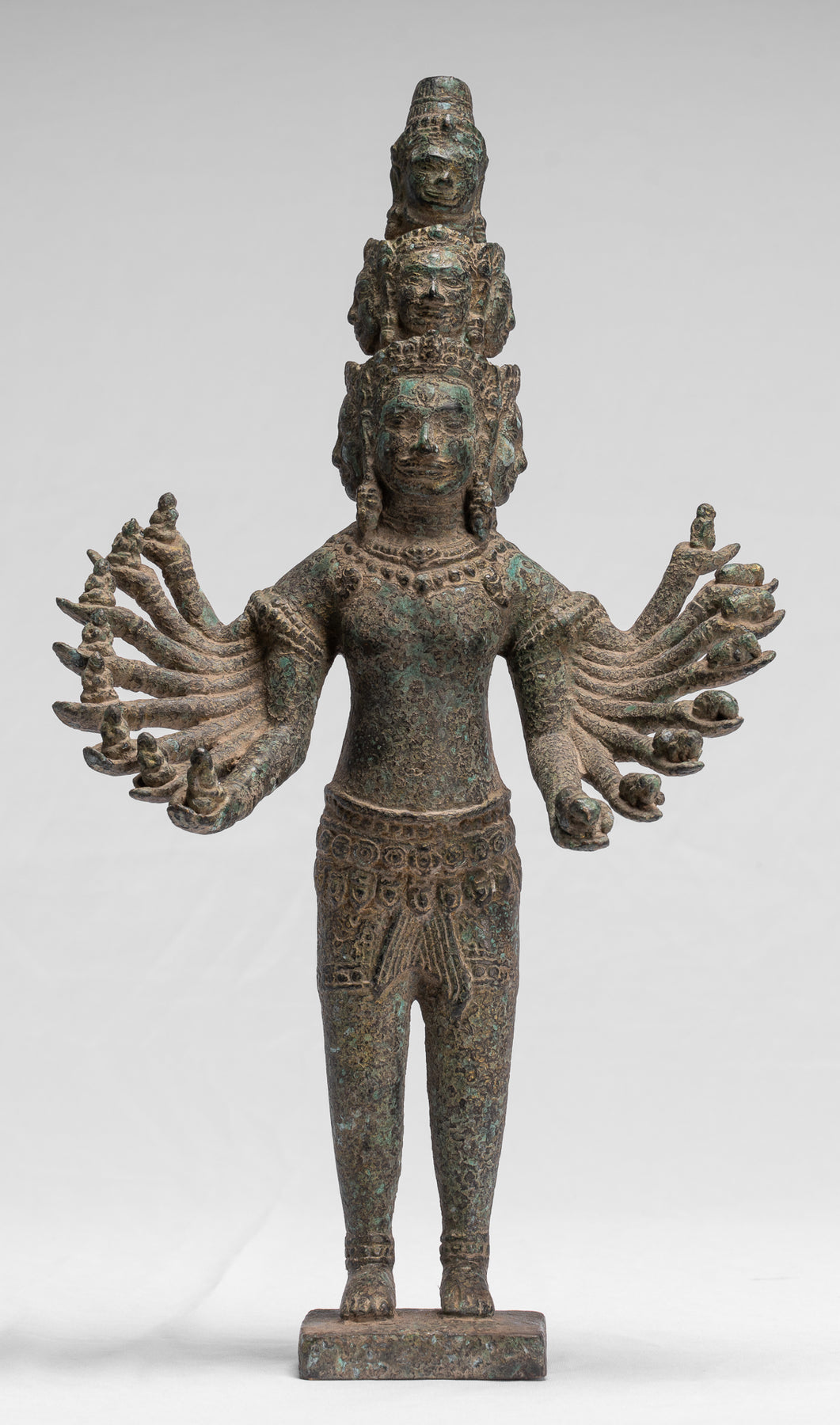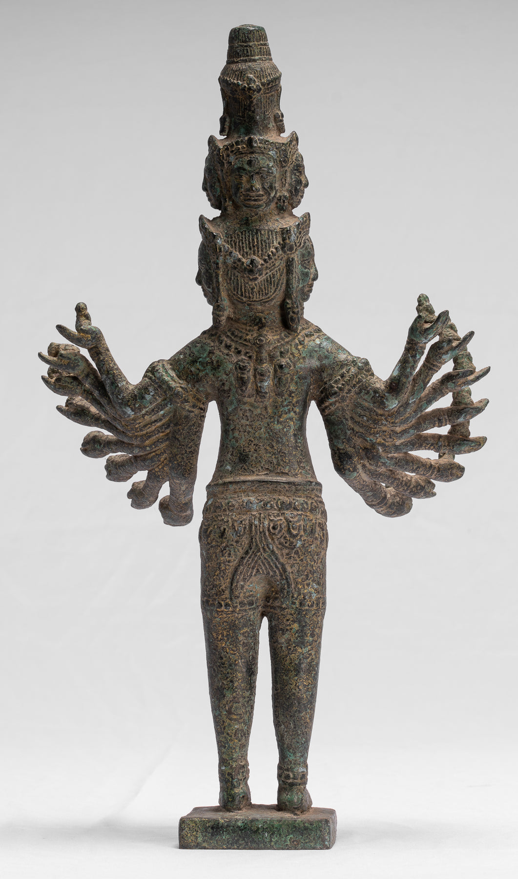 Antike stehende Bayon-Hevajra-Statue aus Bronze im Khmer-Stil – 41 cm hoch