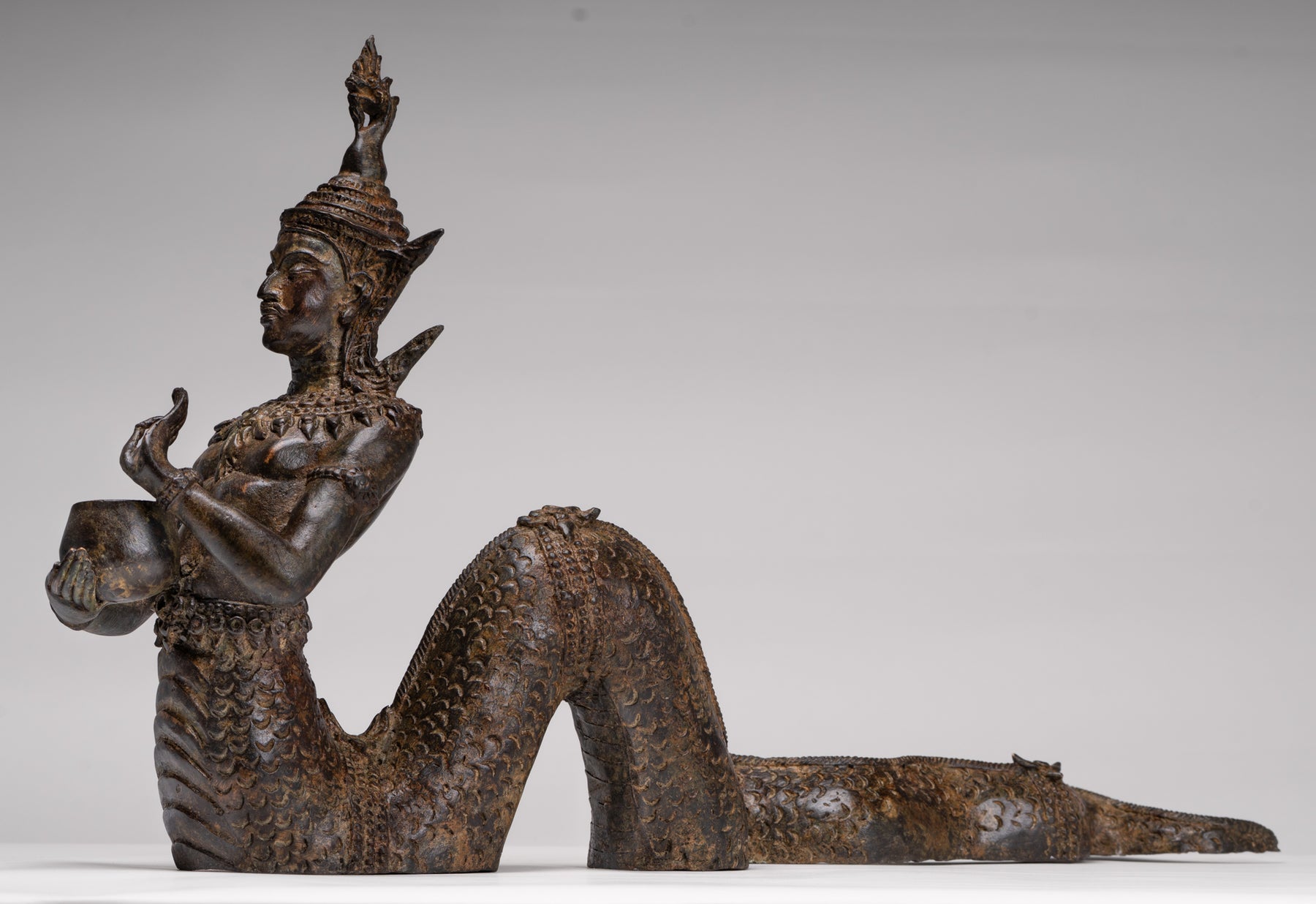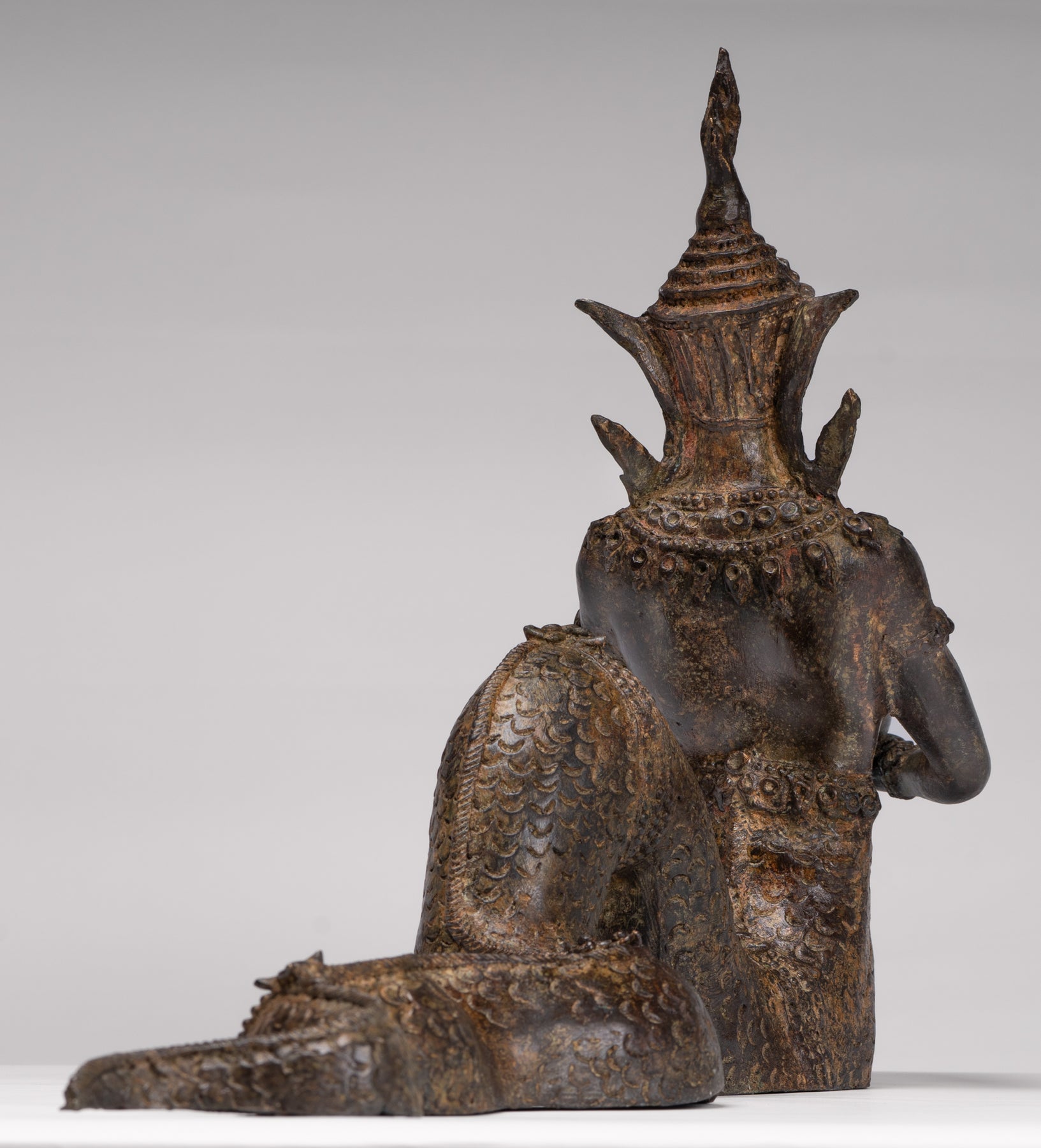 Antike thailändische Bronze Naga Prince Statue - Hüter der Weisheit und Schutz - 38 cm/15 "
