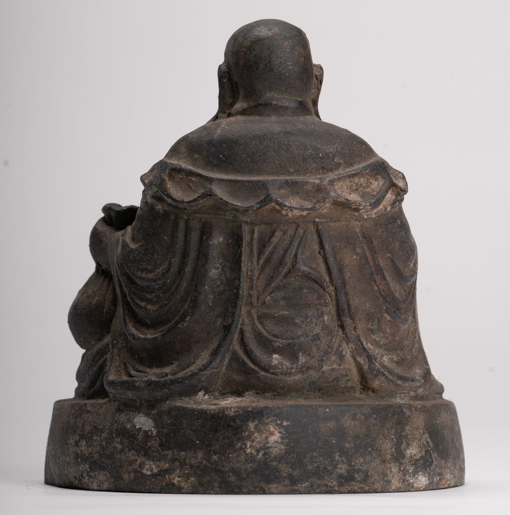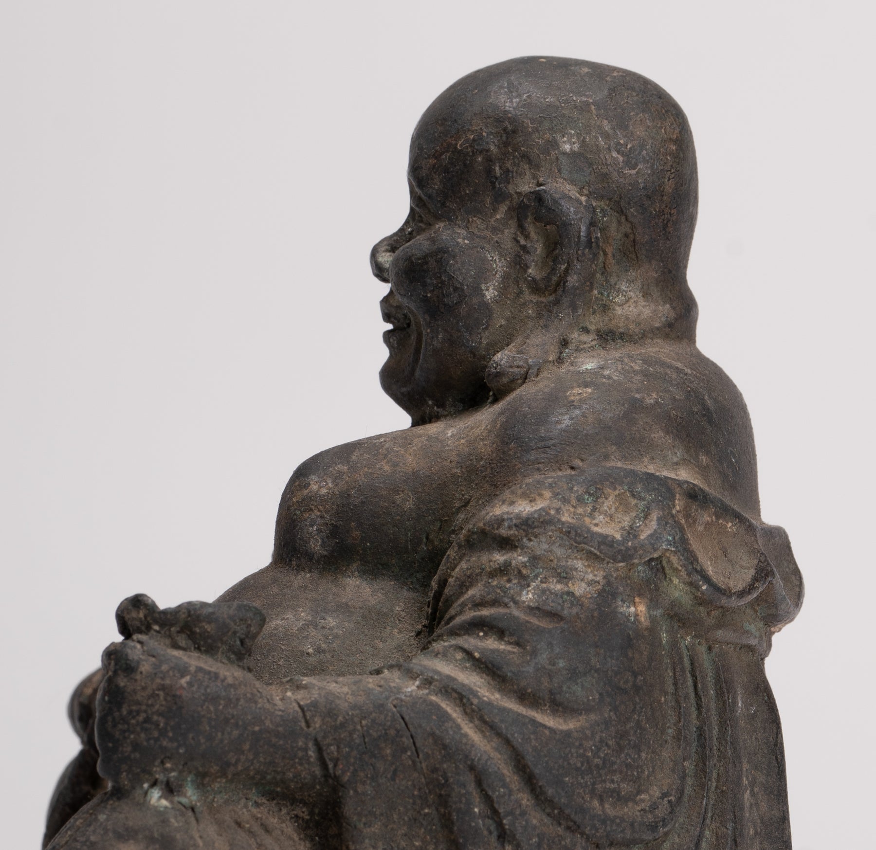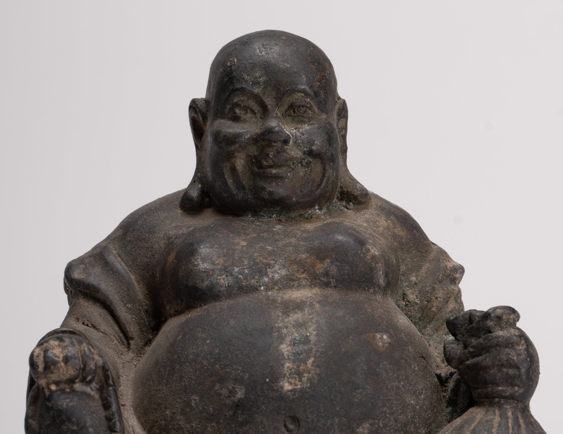 Antike chinesische Bronzestatue „Glücklicher, fetter, lachender Buddha Budai“ – 16 cm