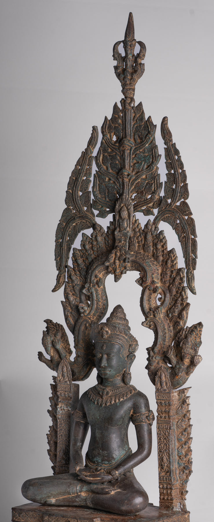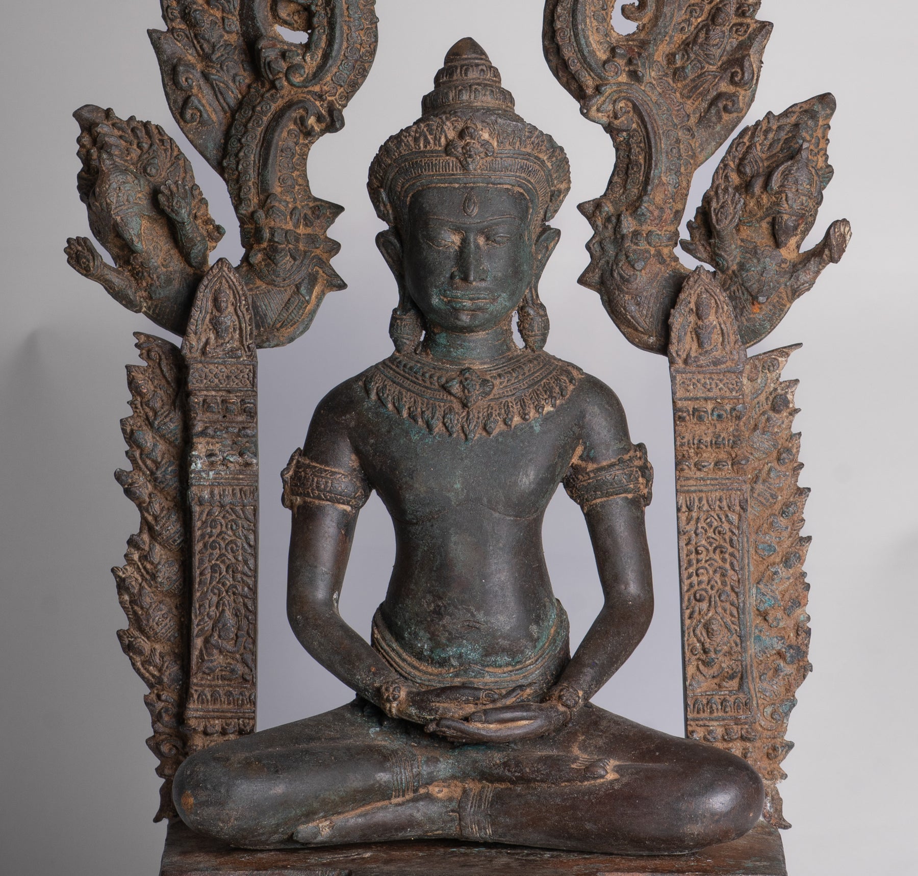 Seine Ushnisha und Roben sind im traditionellen Lopburi-Stil dekoriert.