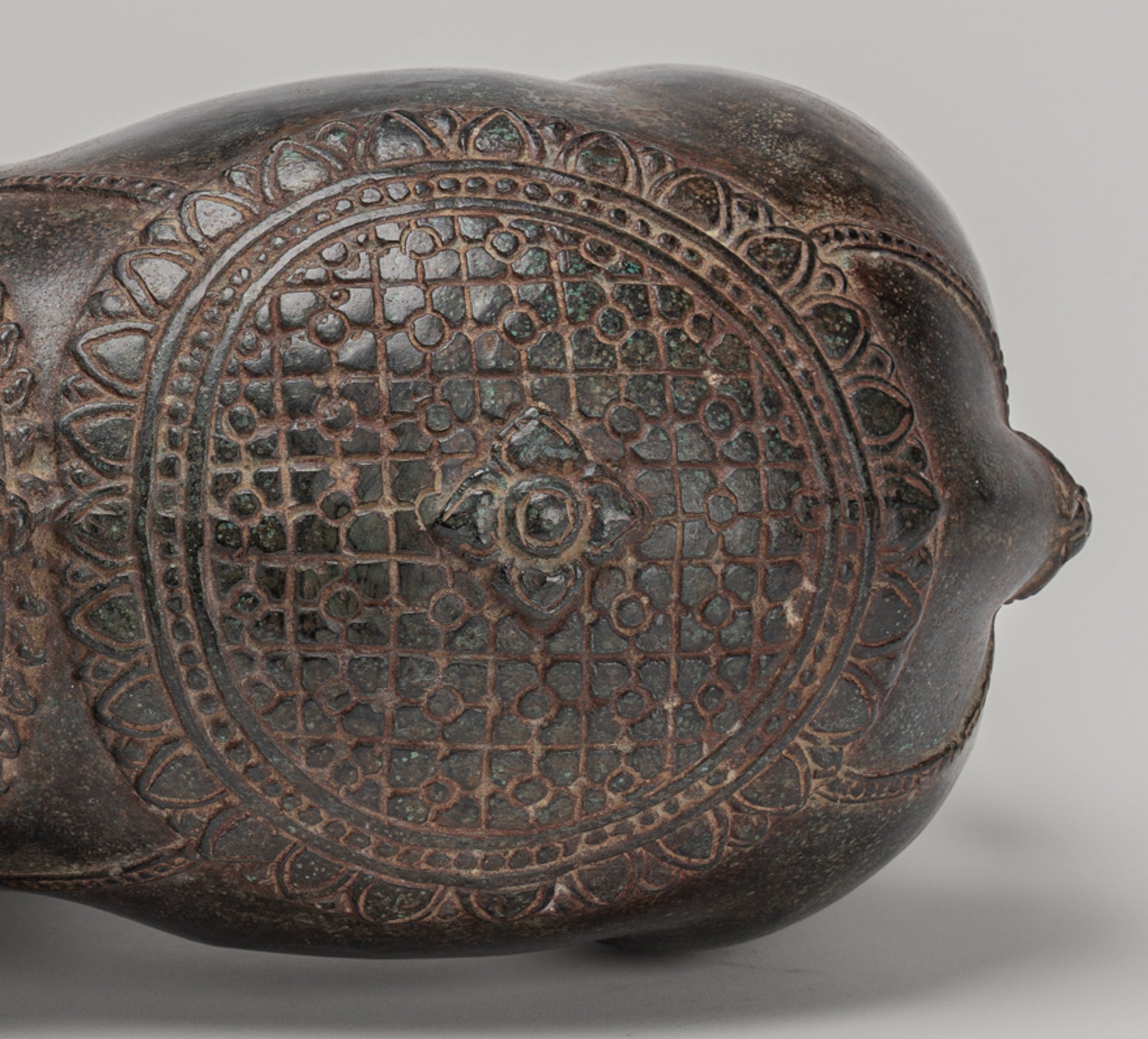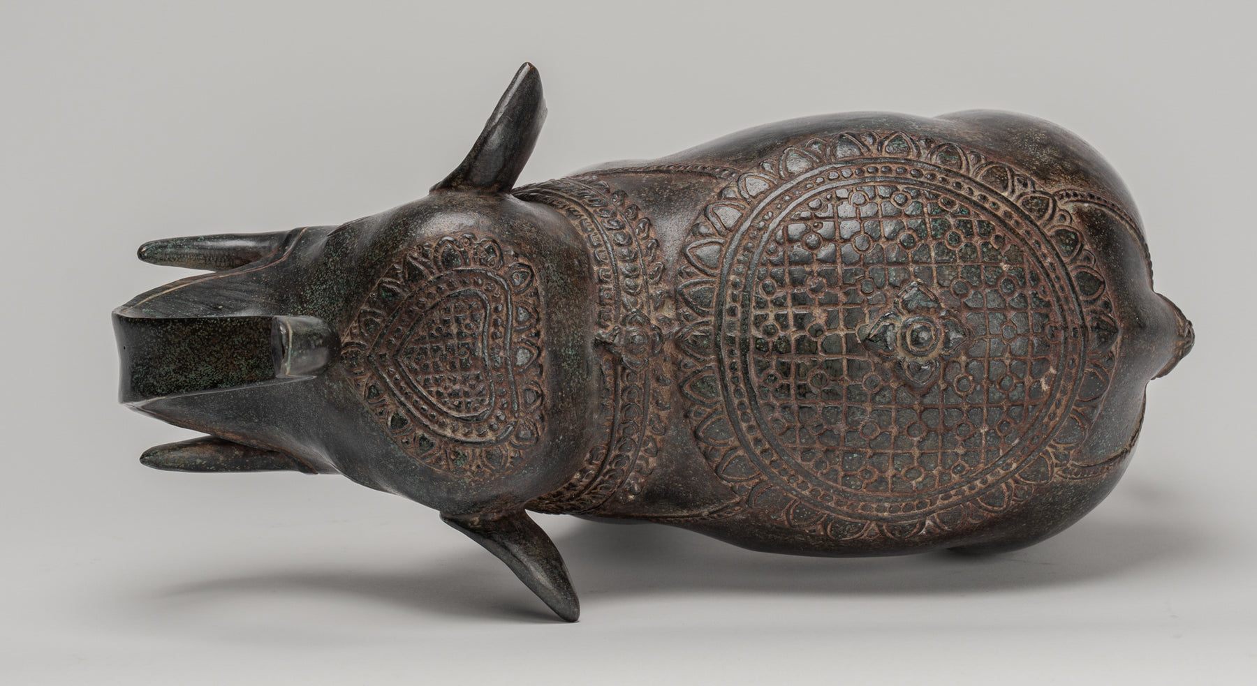 Ganesha Statue - Antique Thai Style Bronze Seated 4-Arm Ganesha Statue - 16cm/6"