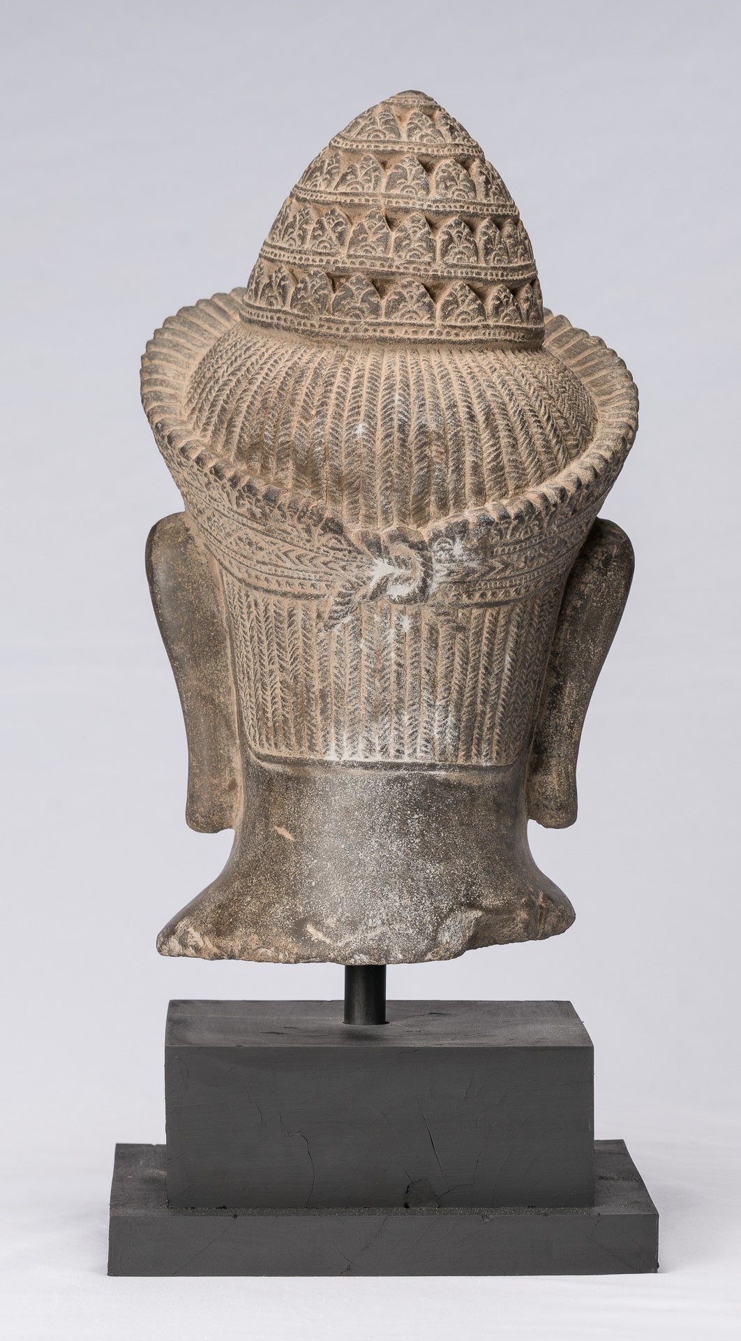 Die Größe des Kopfes deutet darauf hin, dass er einst als bedeutende Wächterfigur gedient hat. Teil einer größeren Steinskulptur.