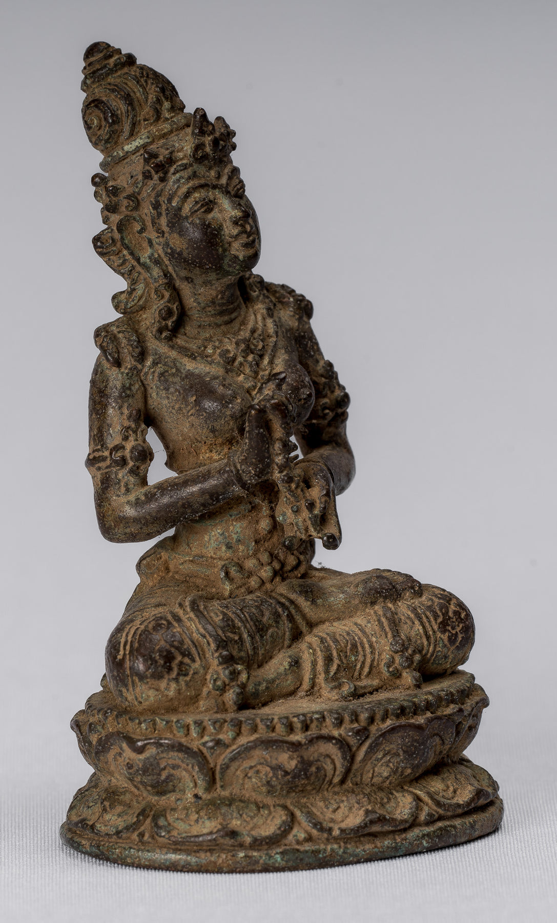 Tara-Statue – antike indonesische Bronze-Devi-Tara-Statue im Java-Stil – 8 cm.