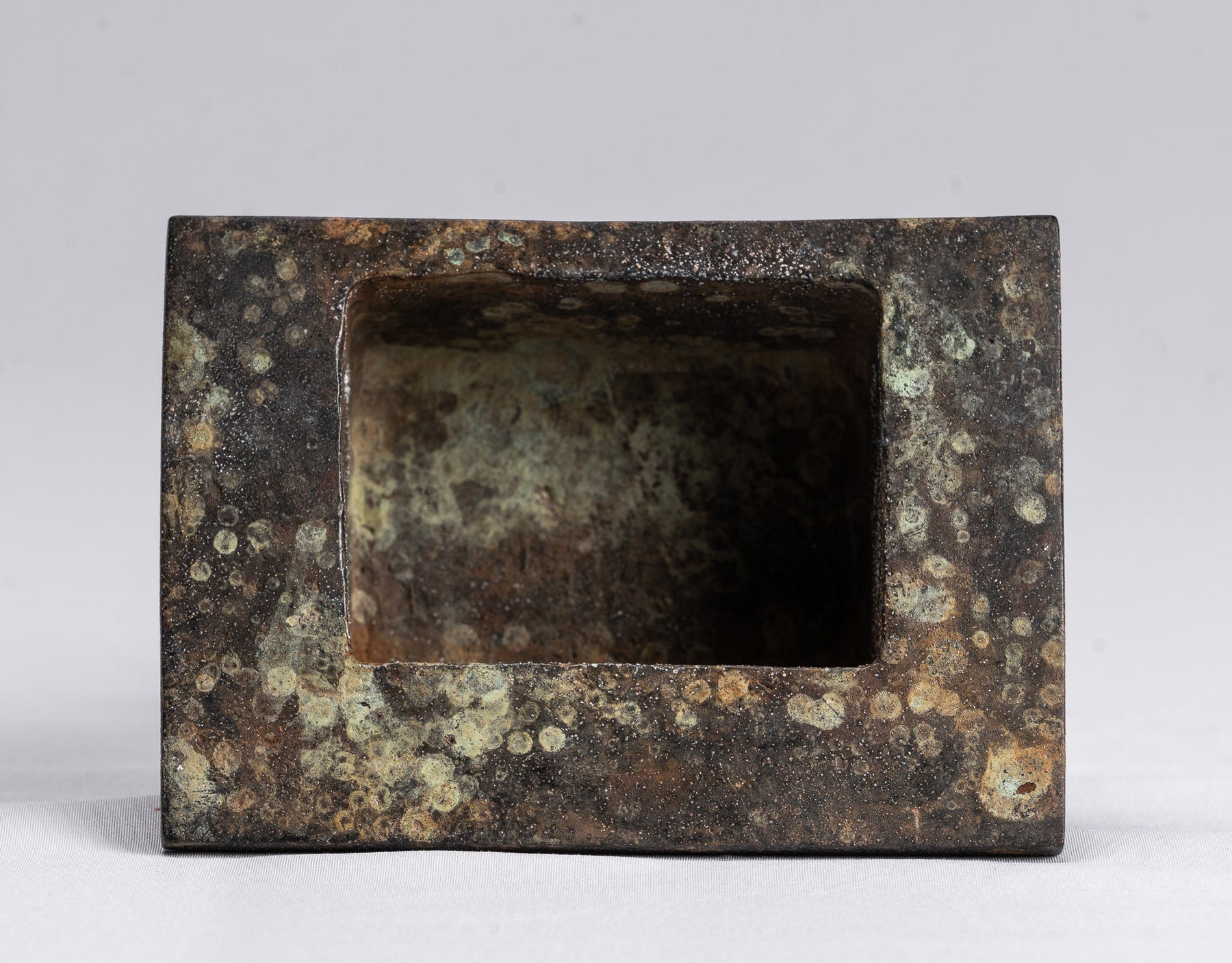 Die Skulptur hat eine wundervolle braune Malachitpatina.