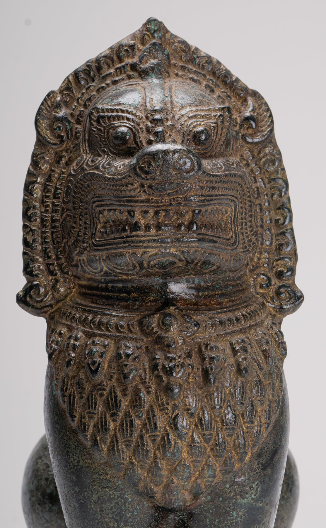 Stehender Tempelwächter oder Löwe aus Bronze im antiken Khmer-Stil – 28 cm