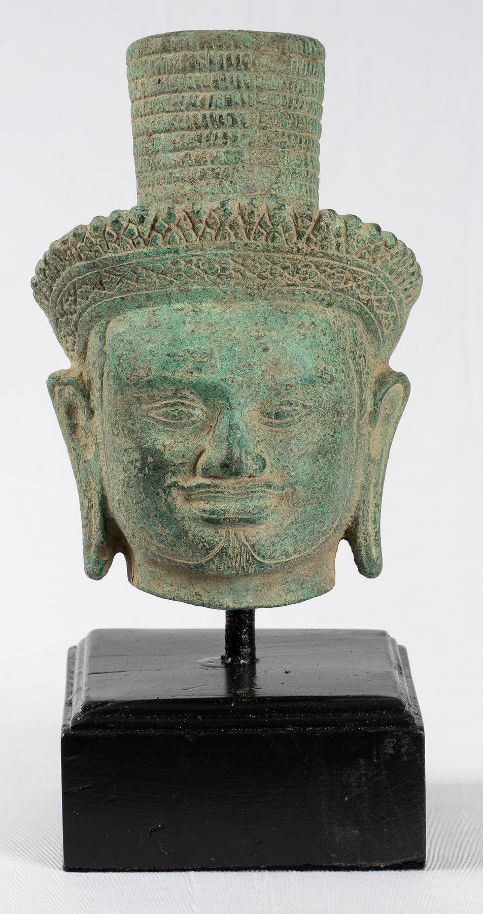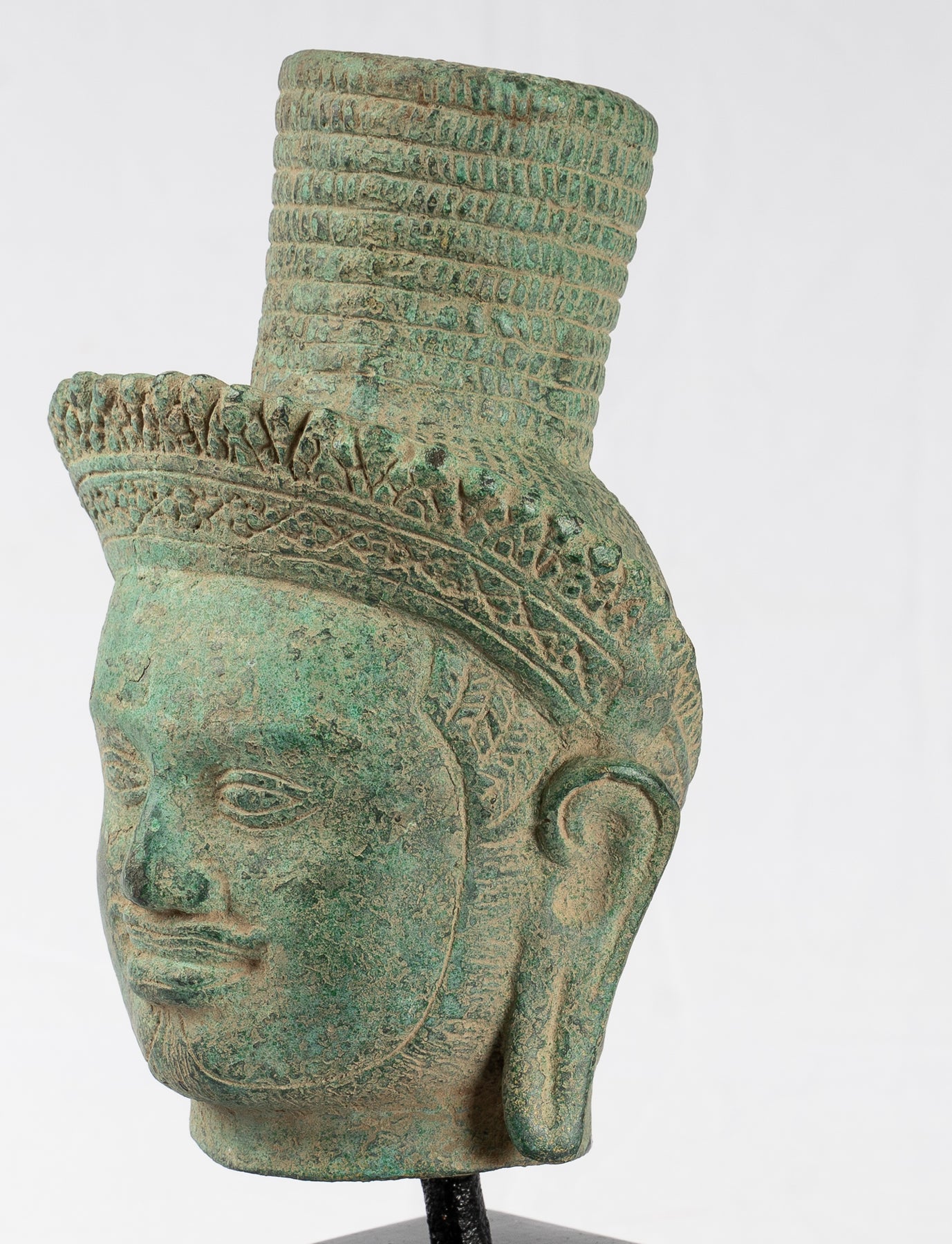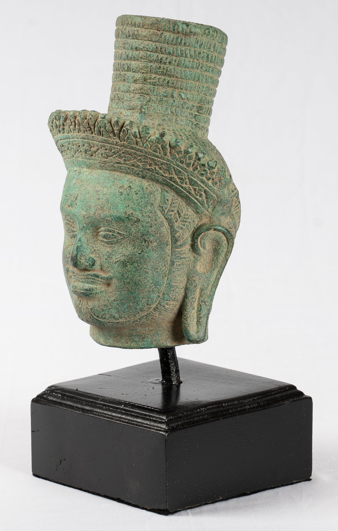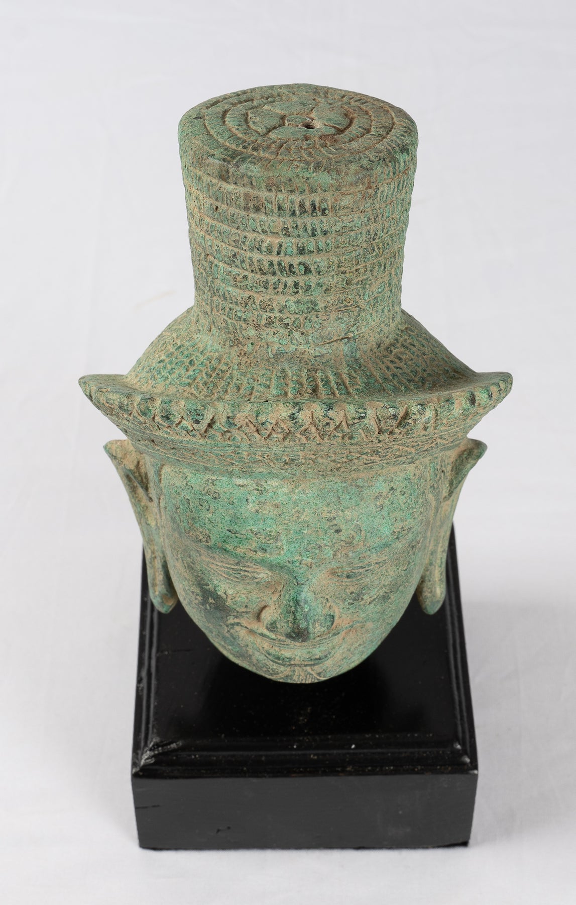 • Antike Bronze-Vishnu-Kopfstatue im Khmer-Stil von Koh Ker – Beschützer und Bewahrer – 23 cm.