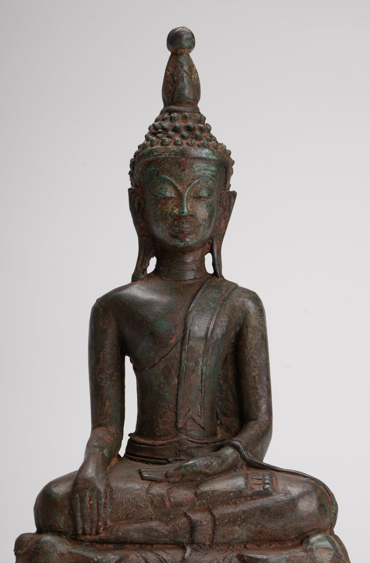 Buddha Statue - Antique Laos Style Bronze Enlightenment Elephant Buddha Statue - 29cm/12"