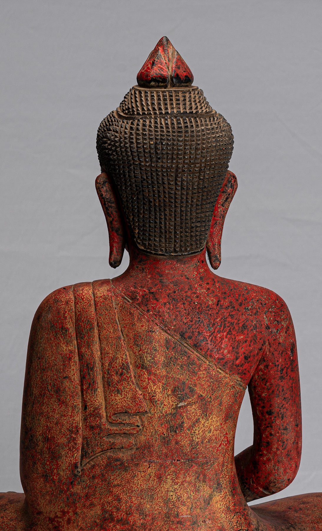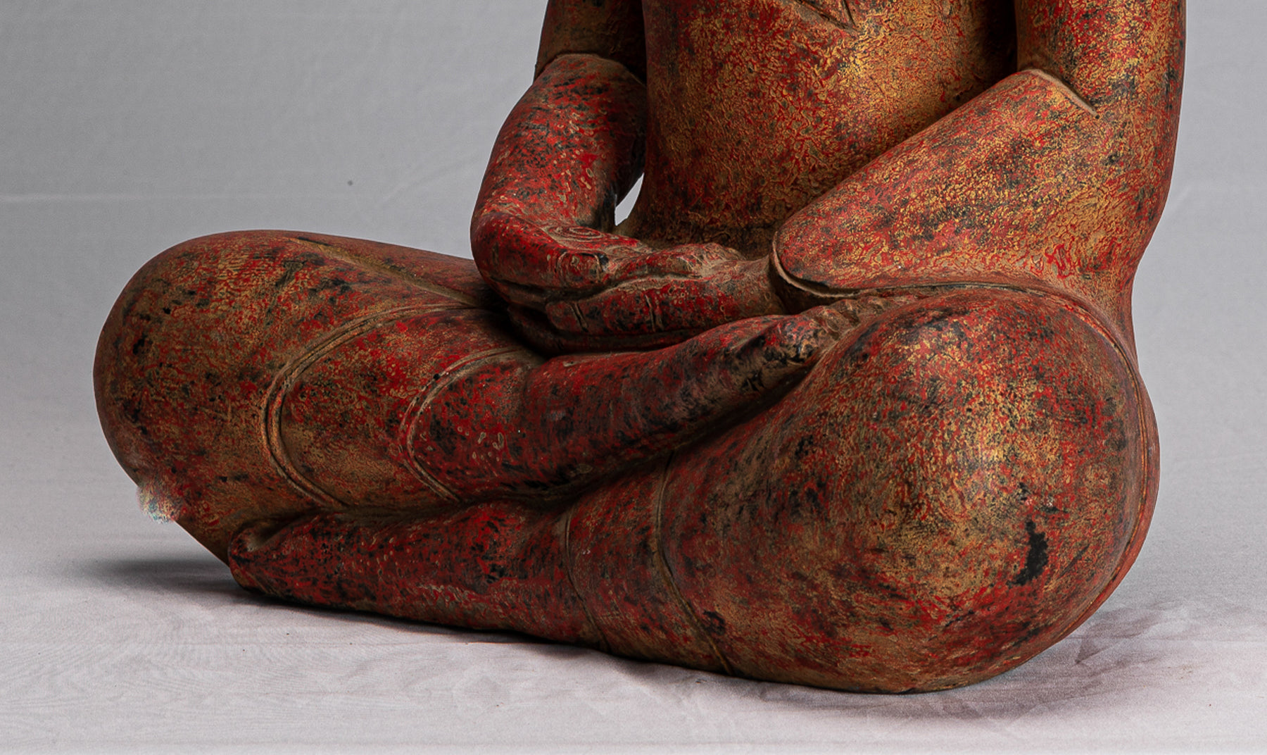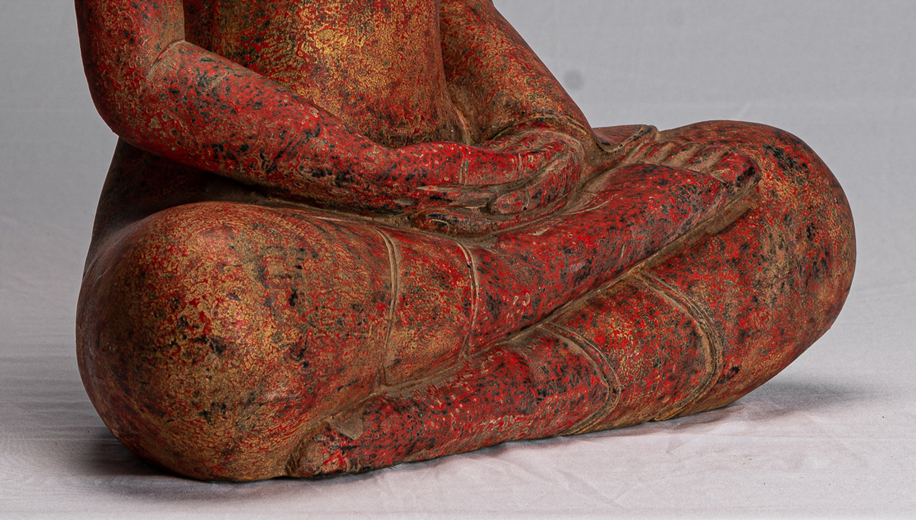 Una antigua estatua de Buda de Meditación de Madera de Madera de estilo jemer.