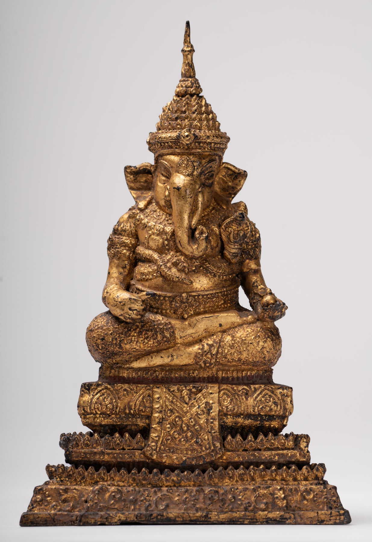 Ganesha está sentado en un trono decorado al estilo distintivo de la Período de Rattanakosin.