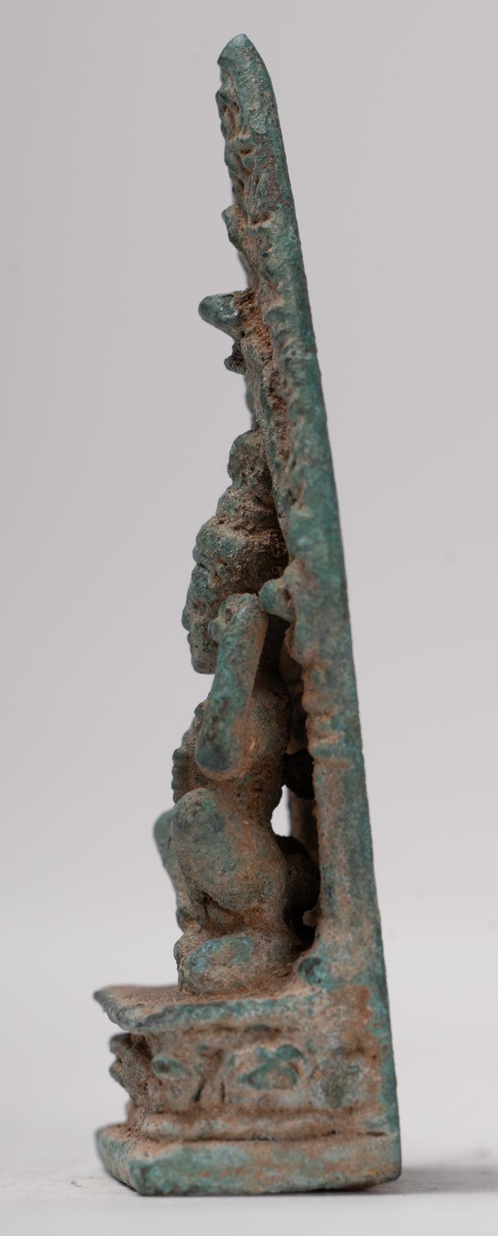 La imagen irradia una distancia, el poder silencioso de Vishnu y la sensualidad típica del período Baphuon. El Vishnu tiene un equilibrio y proporciones perfectos que son la clave para una fina escultura de Vishnu. La pátina y los detalles de esta pieza son particularmente atractivos.