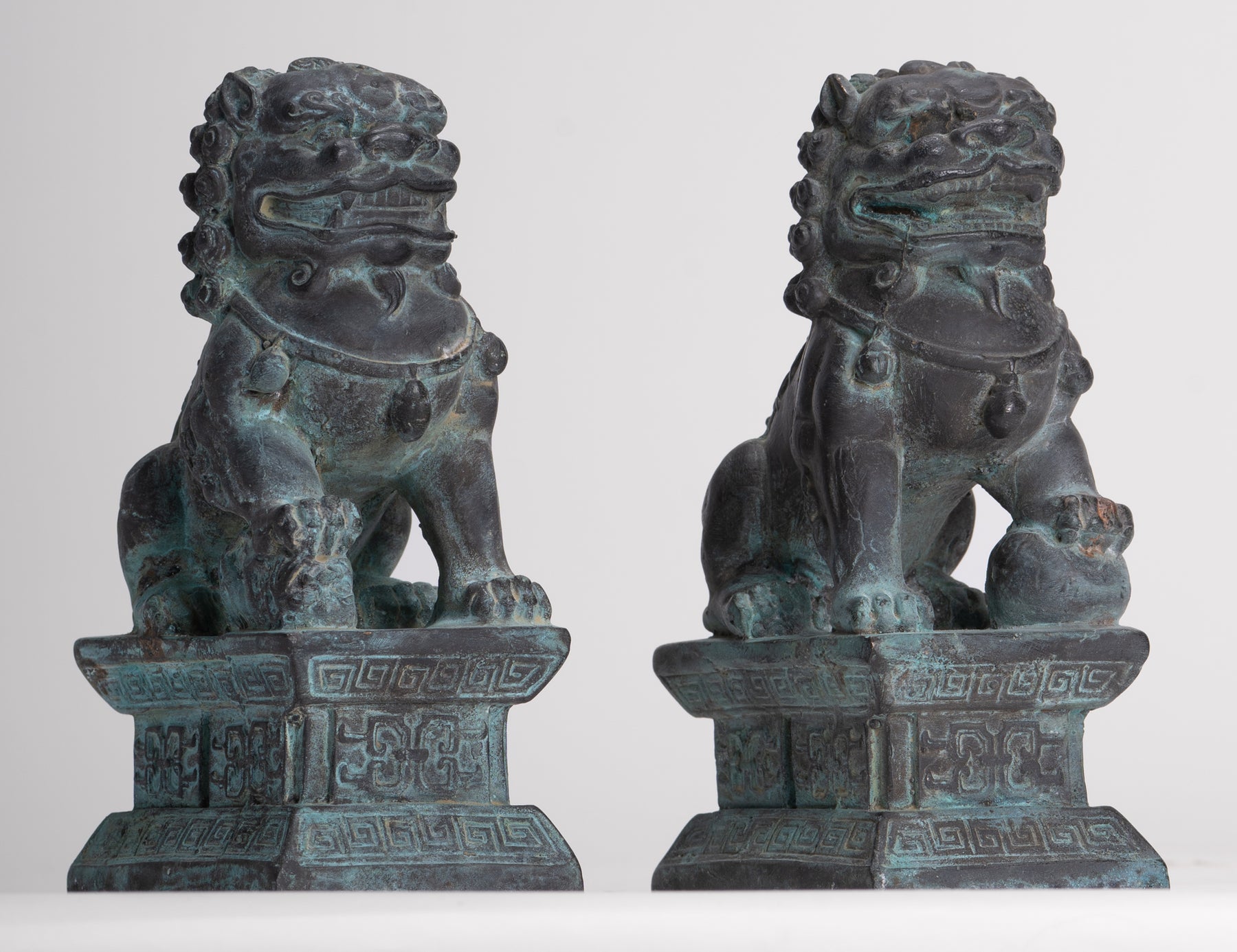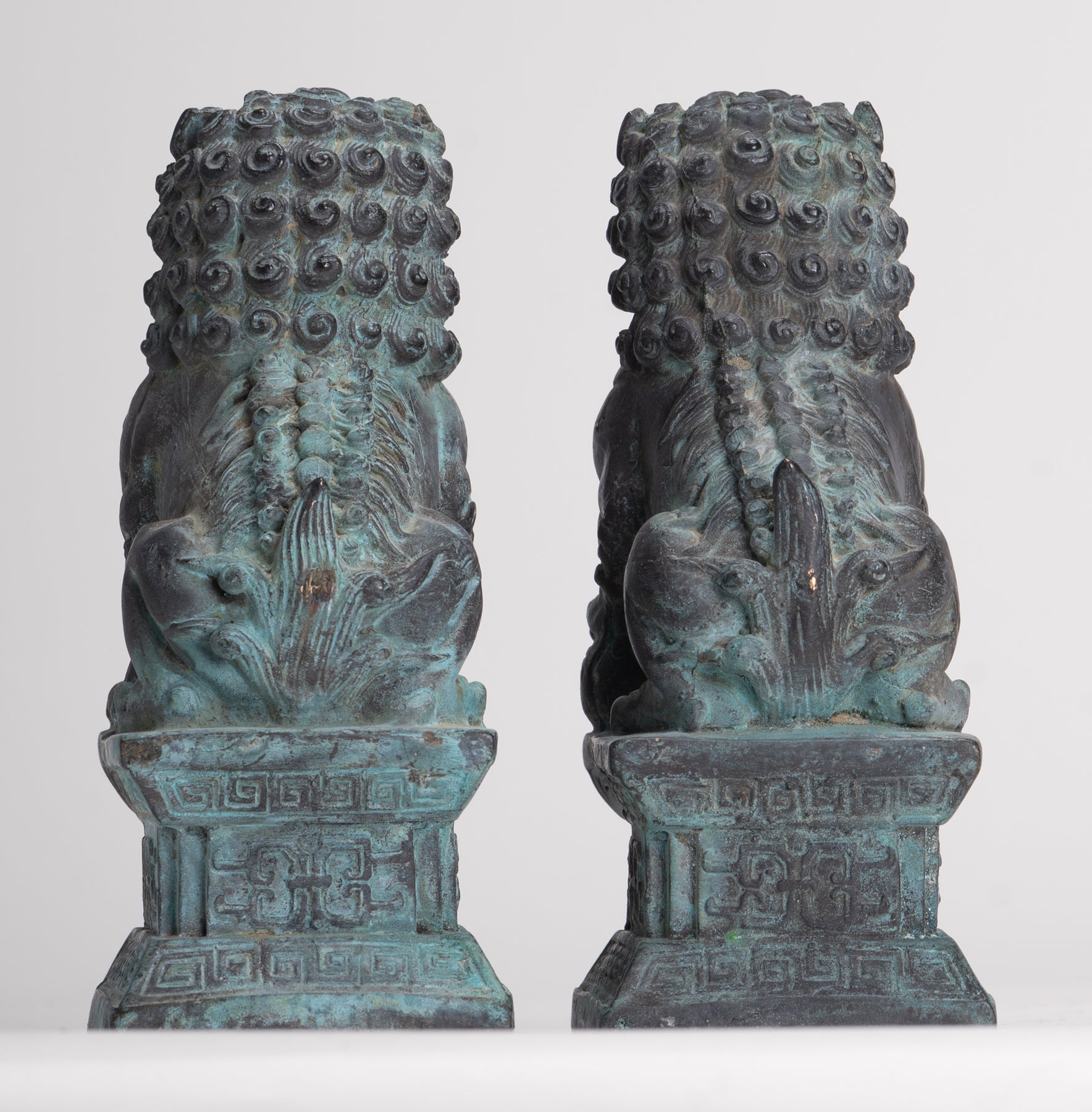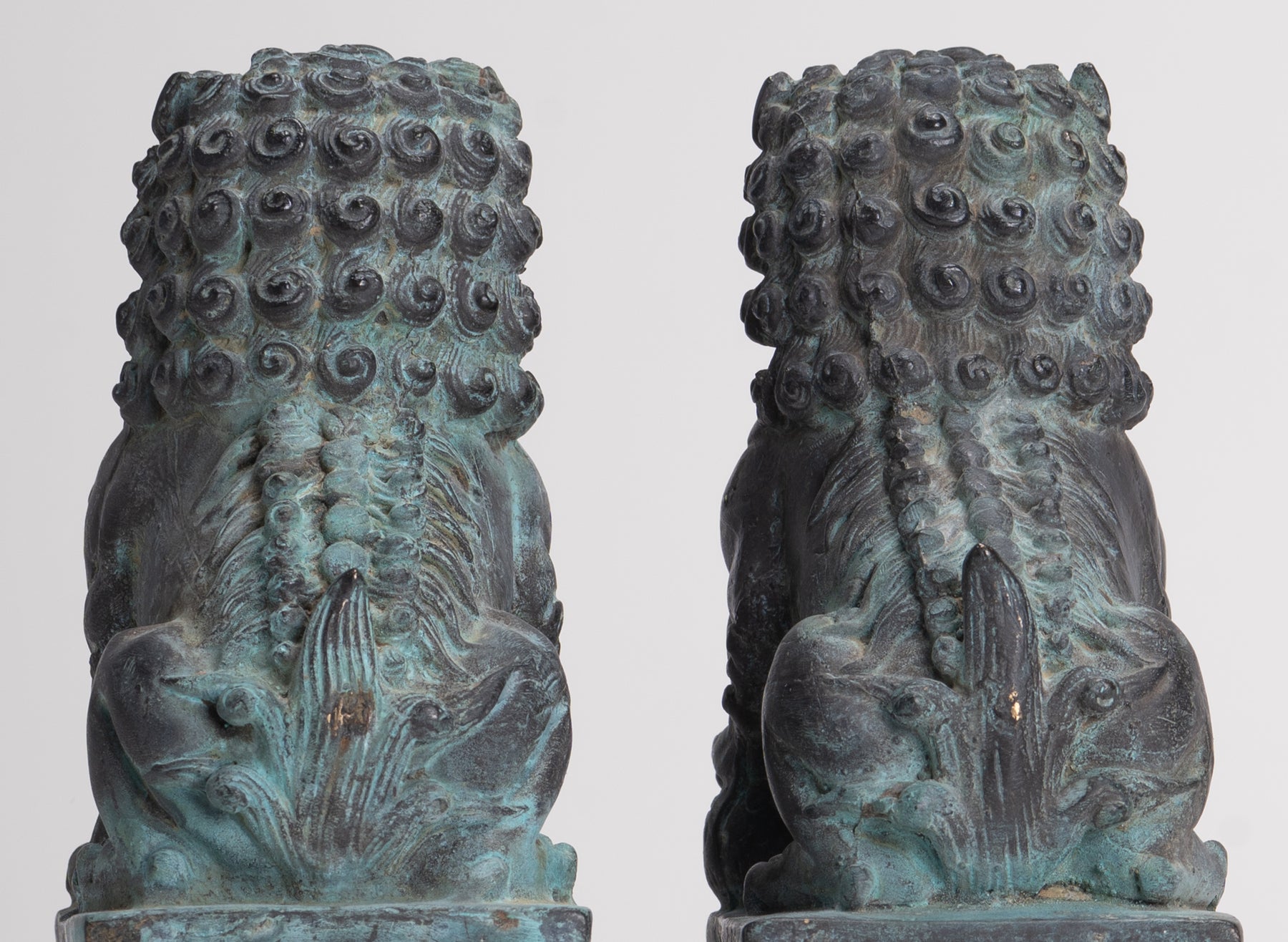 Leones guardianes del templo de bronce de estilo chino antiguo Leones imperiales Foo Dogs (par) - 17 cm / 7 "