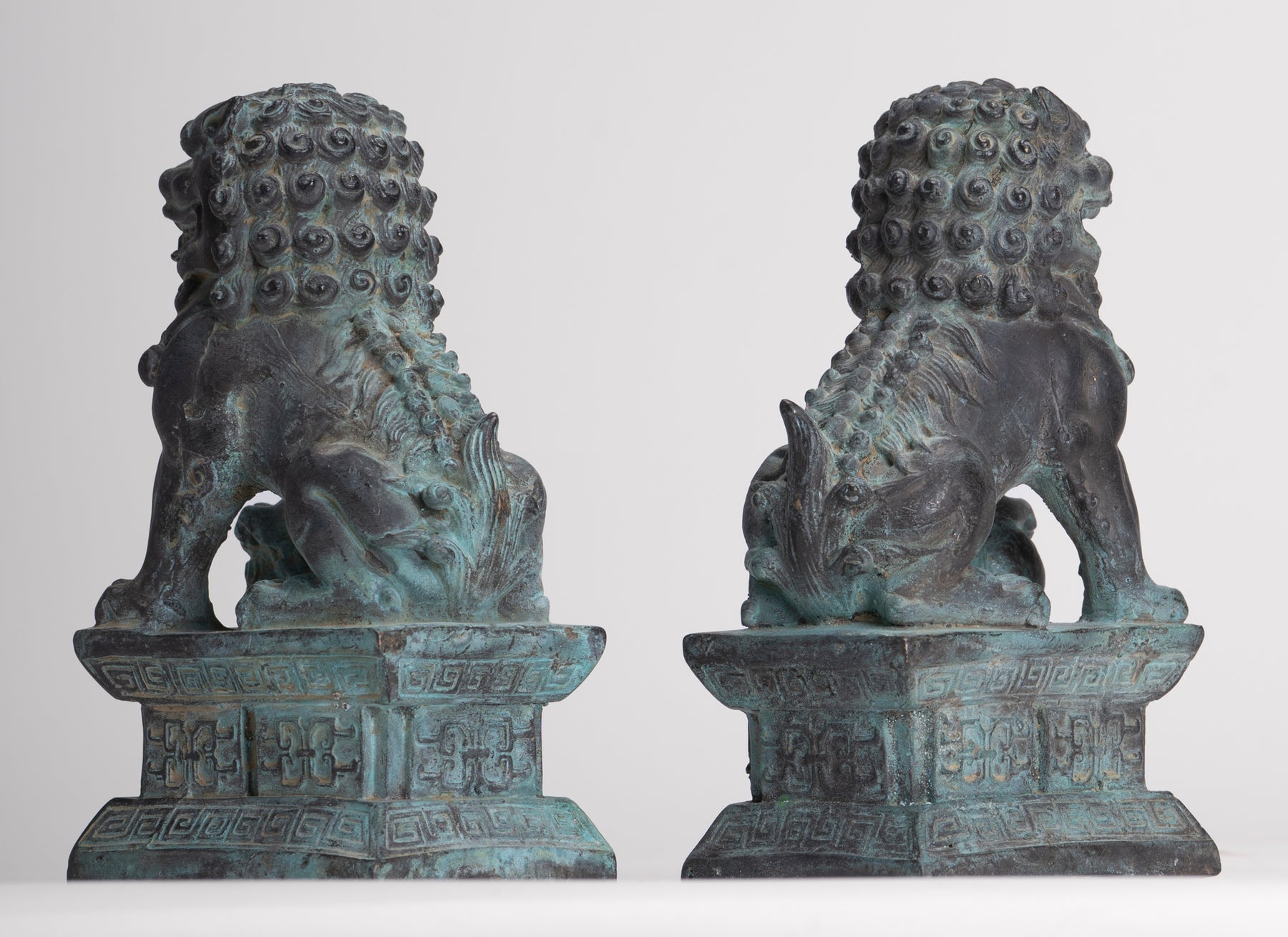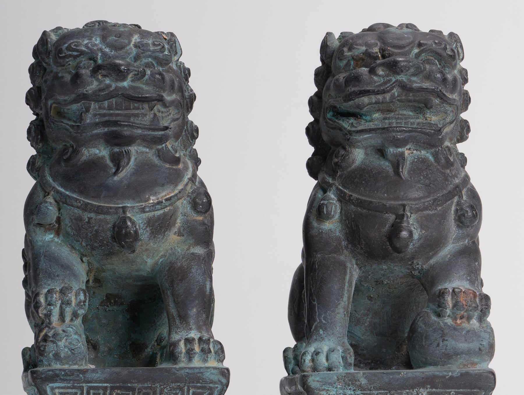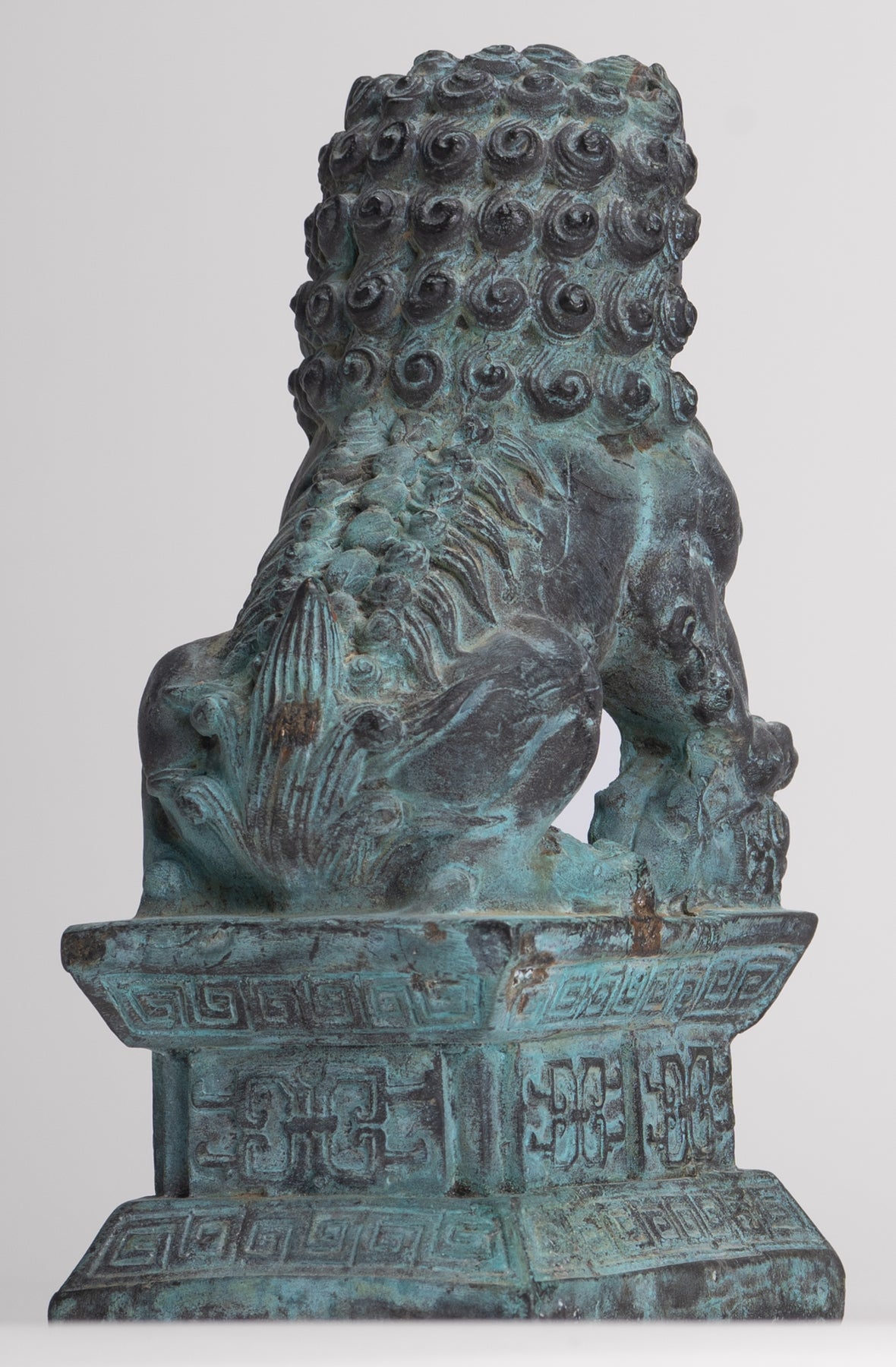 Leones guardianes del templo de bronce de estilo chino antiguo Leones imperiales Foo Dogs (par) - 17 cm / 7 "