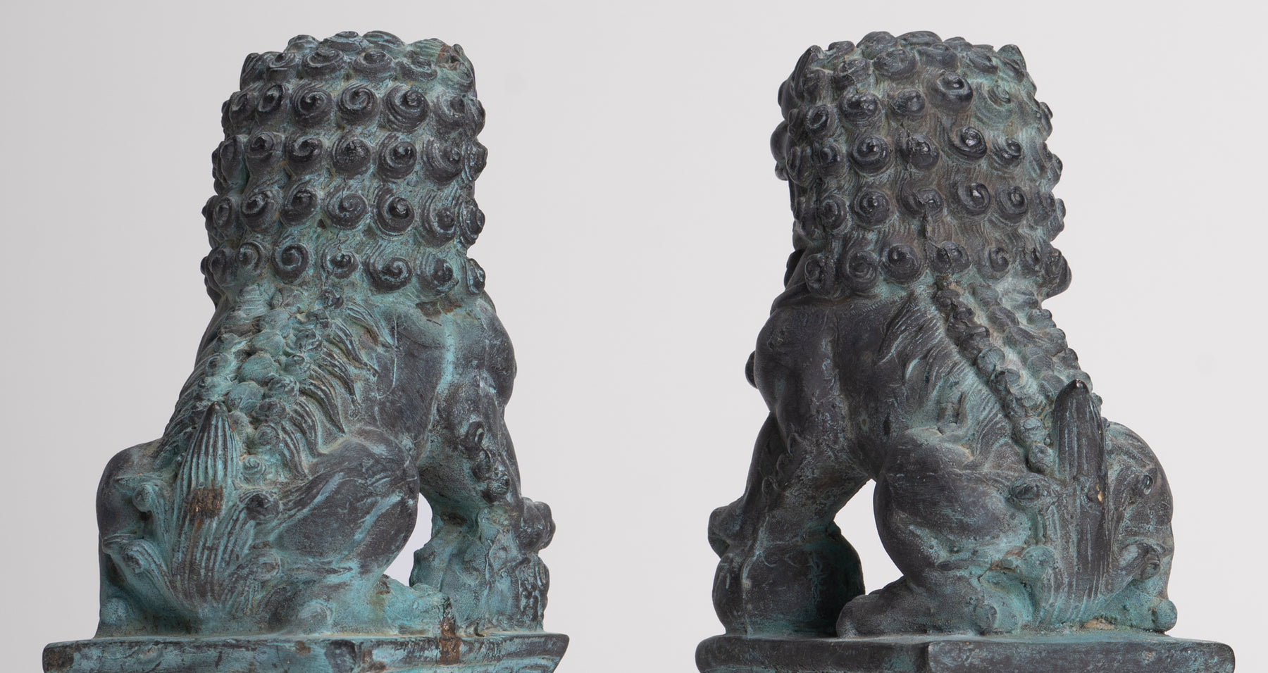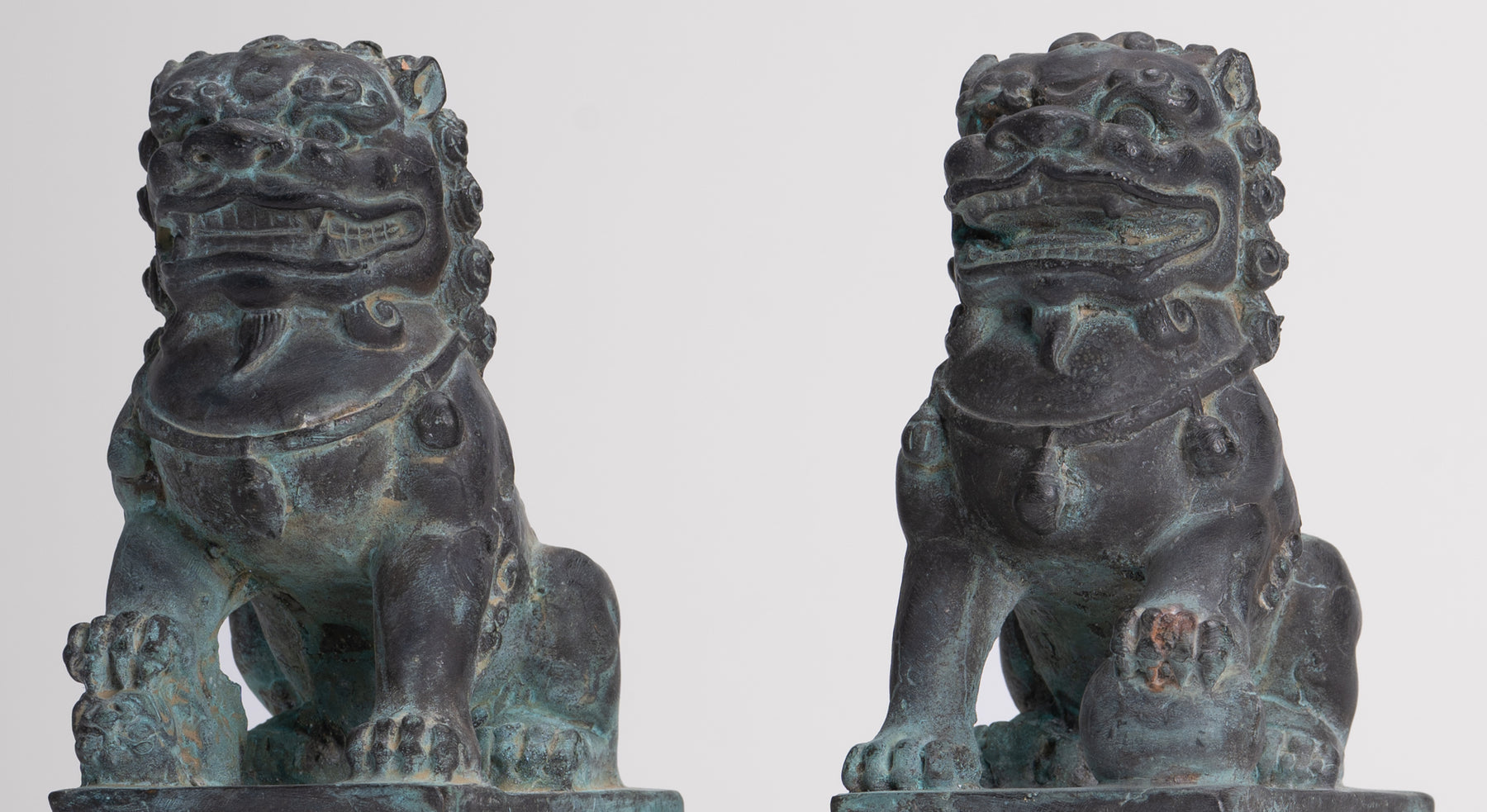 Desde la introducción del simbolismo del león en la cultura india, especialmente a través del simbolismo budista, las estatuas de leones guardianes se han colocado tradicionalmente frente a los palacios imperiales chinos, las tumbas imperiales, las oficinas gubernamentales, los templos y las casas de los funcionarios gubernamentales y los ricos, y se cree que tienen poderosos beneficios protectores.