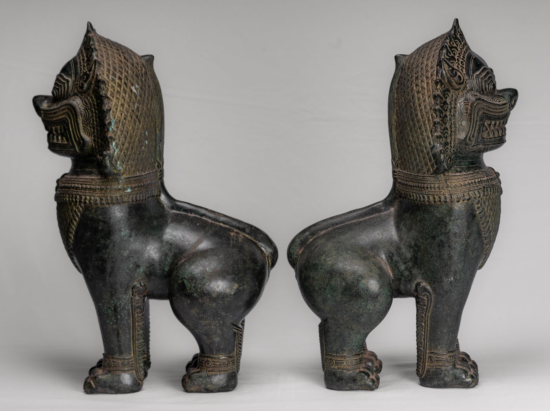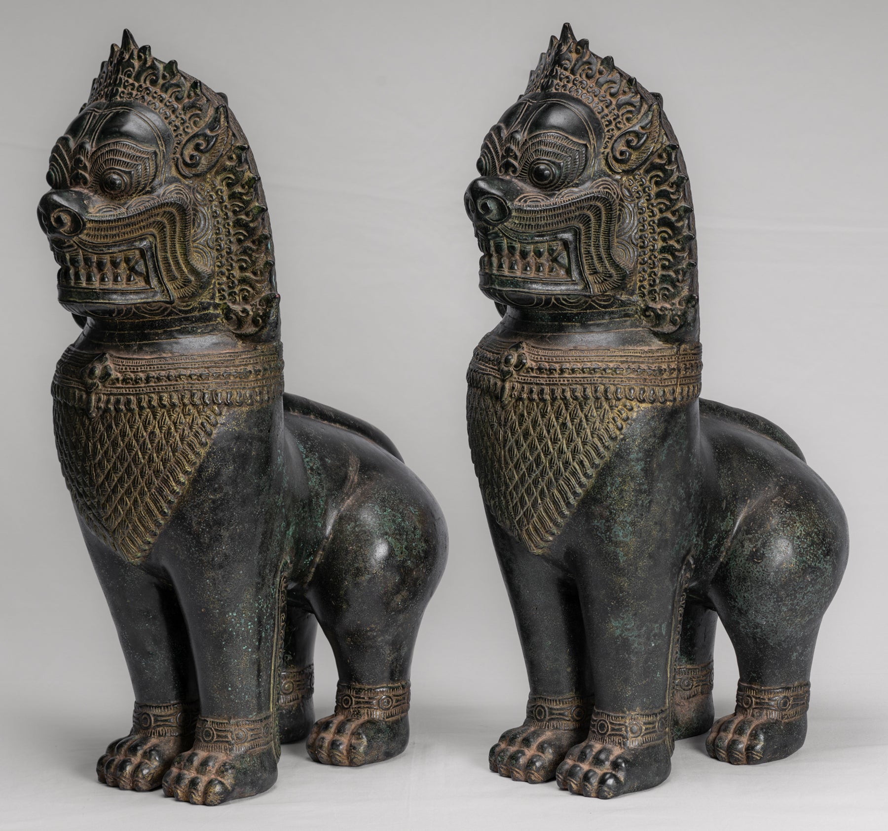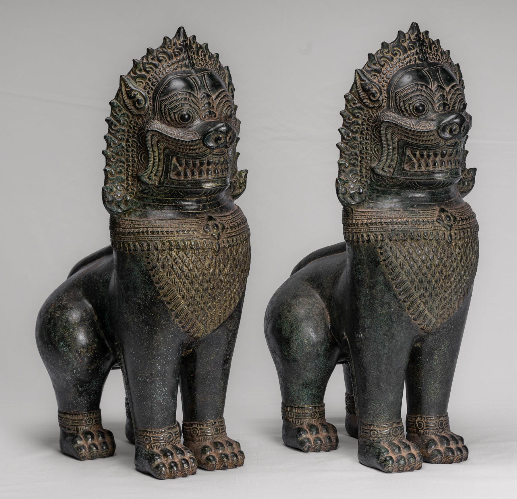 Antiguo Khmer Style Bronze Standing Temple Guardianes o leones - 54 cm/22 "(par)