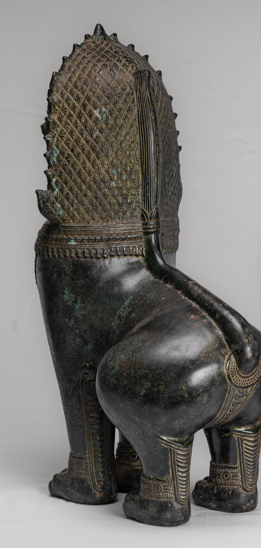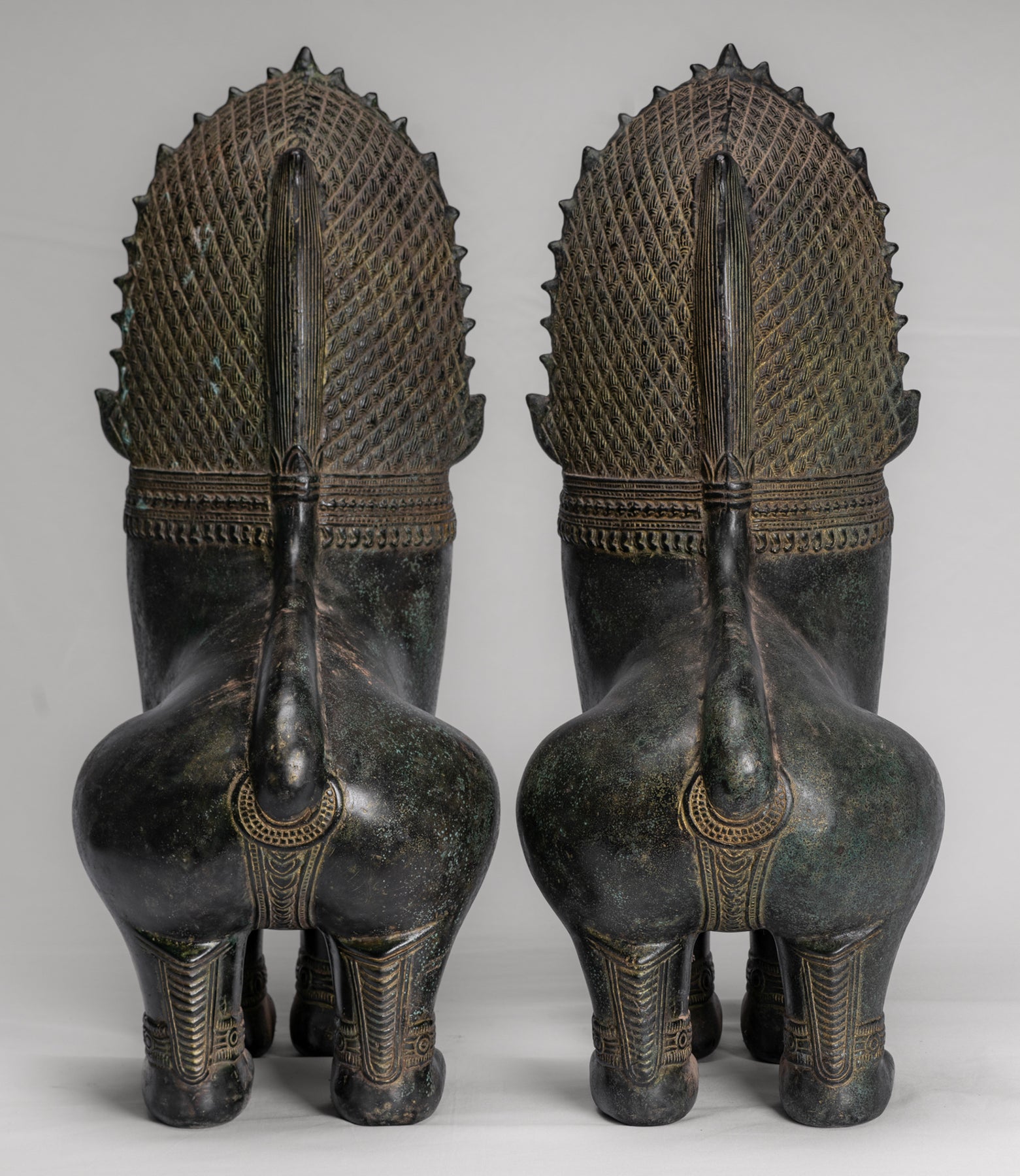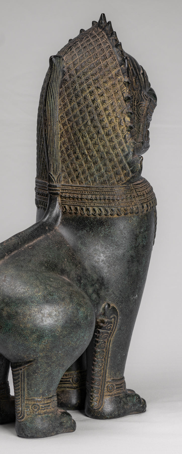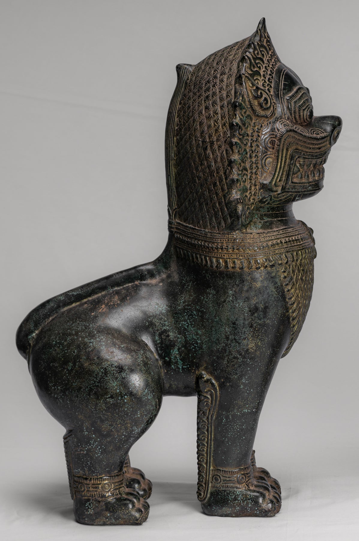 Antiguo Khmer Style Bronze Standing Temple Guardianes o leones - 54 cm/22 "(par)