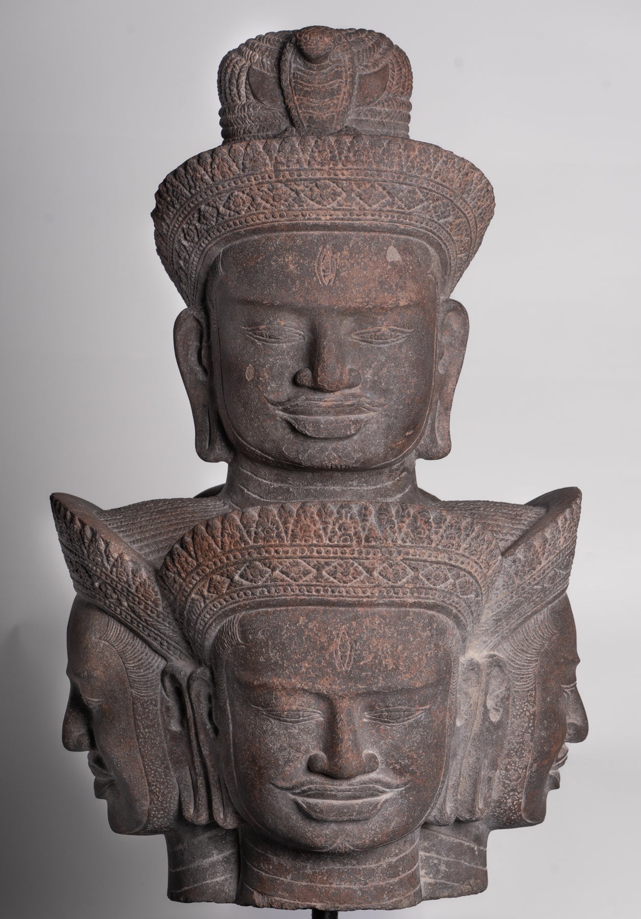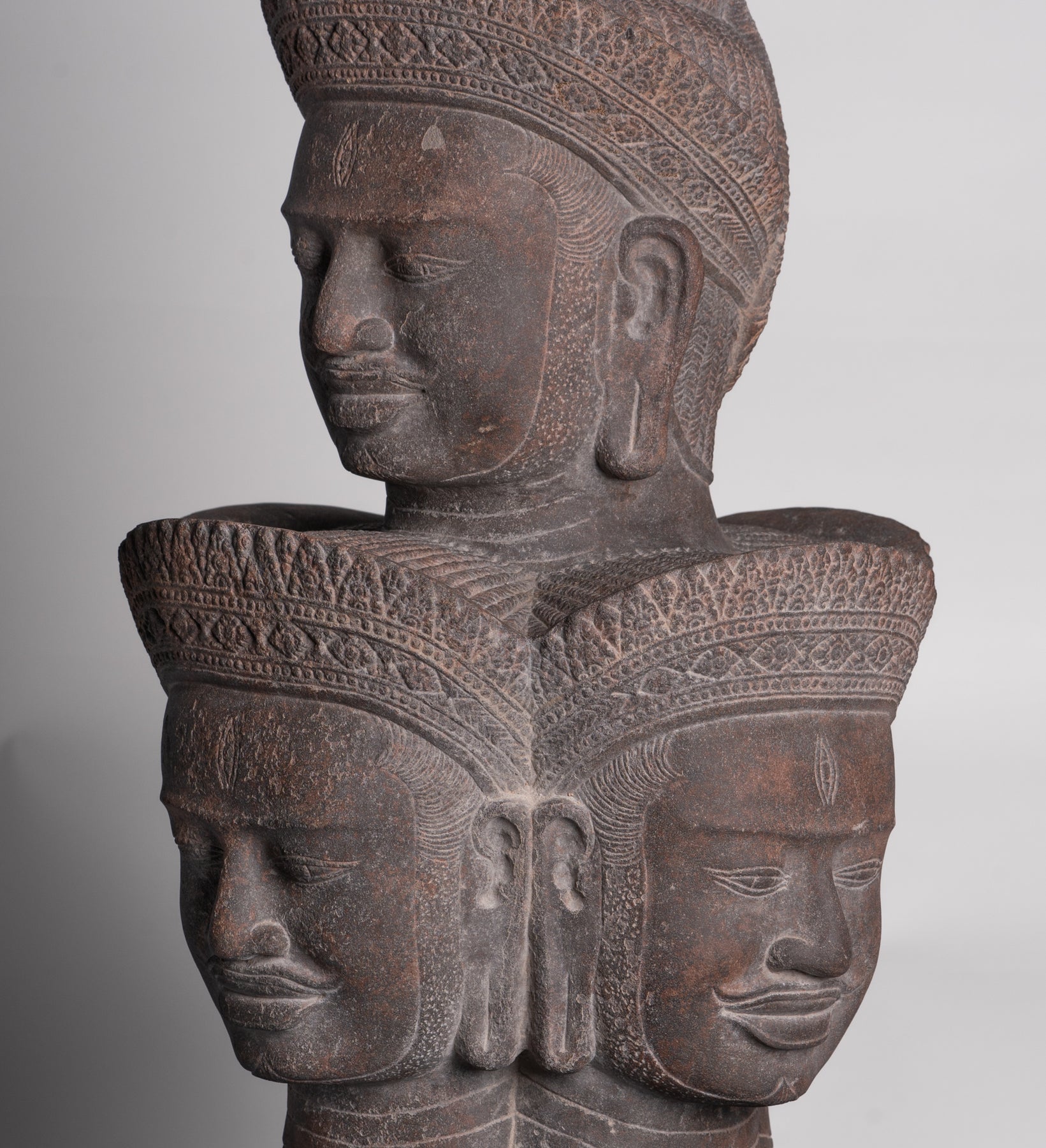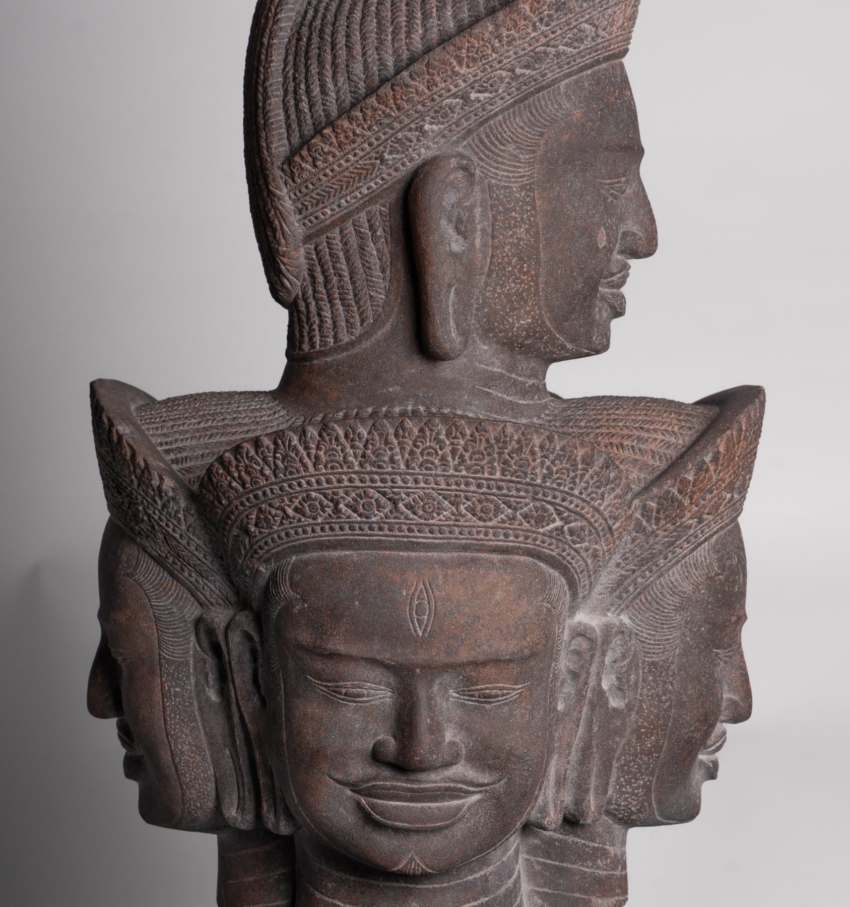 Shiva Statue - Antique Angkor Style Khmer Stone Pancha-Mukha Shiva Statue - The Destroyer - 72cm/29"