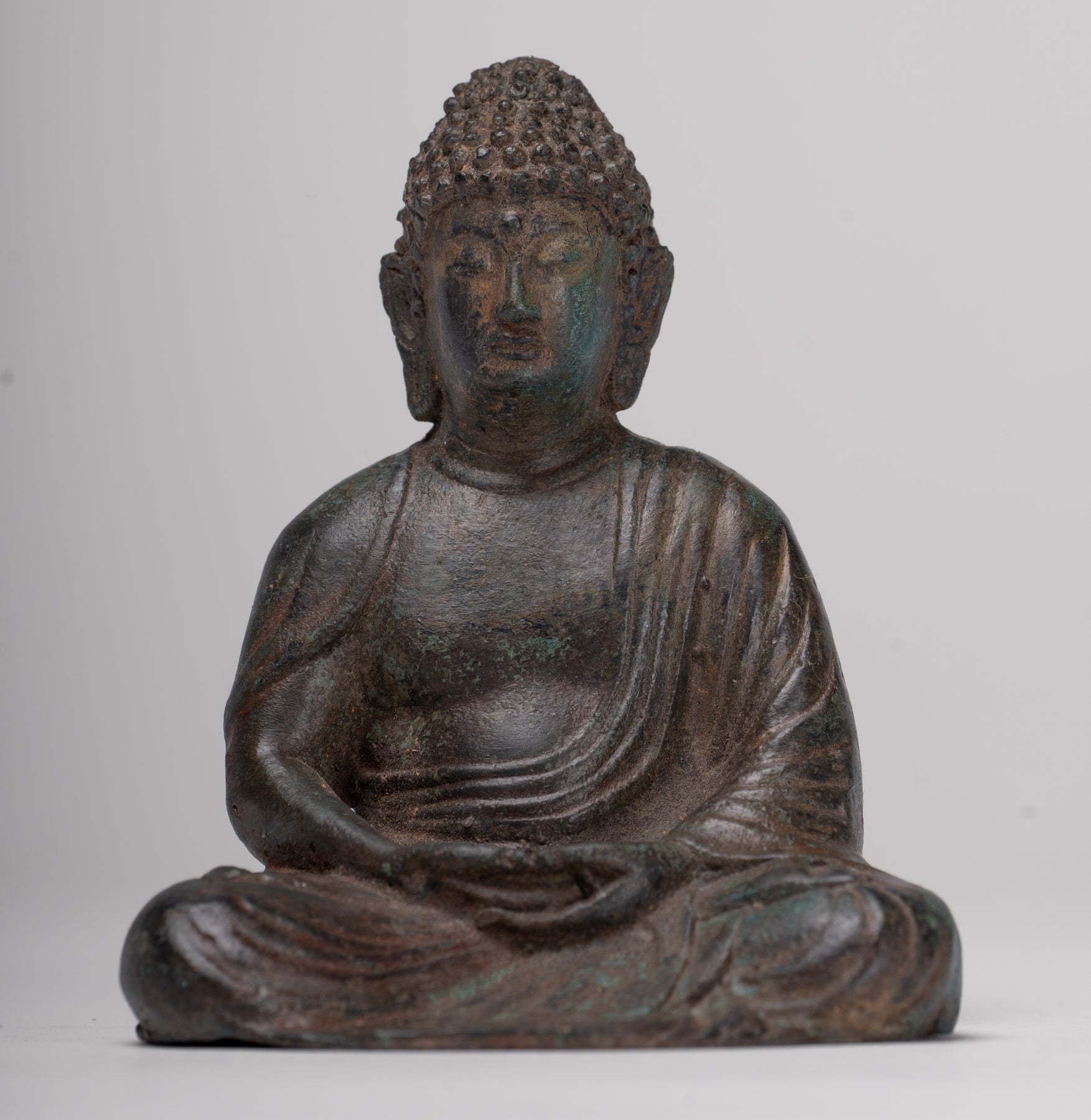 Estatua de Buda de Meditación Amida Amitabha de estilo japonés antiguo - 10 cm/4 "