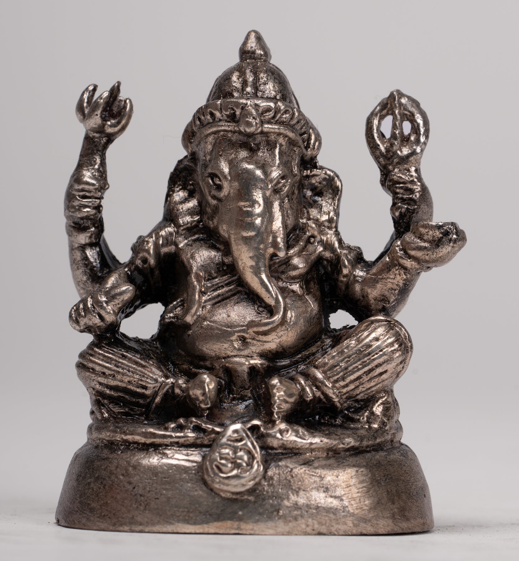Estatua de Ganesha - Estatua de Ganesha de plata sentada de bronce de estilo tailandés antiguo - 8 cm/3"