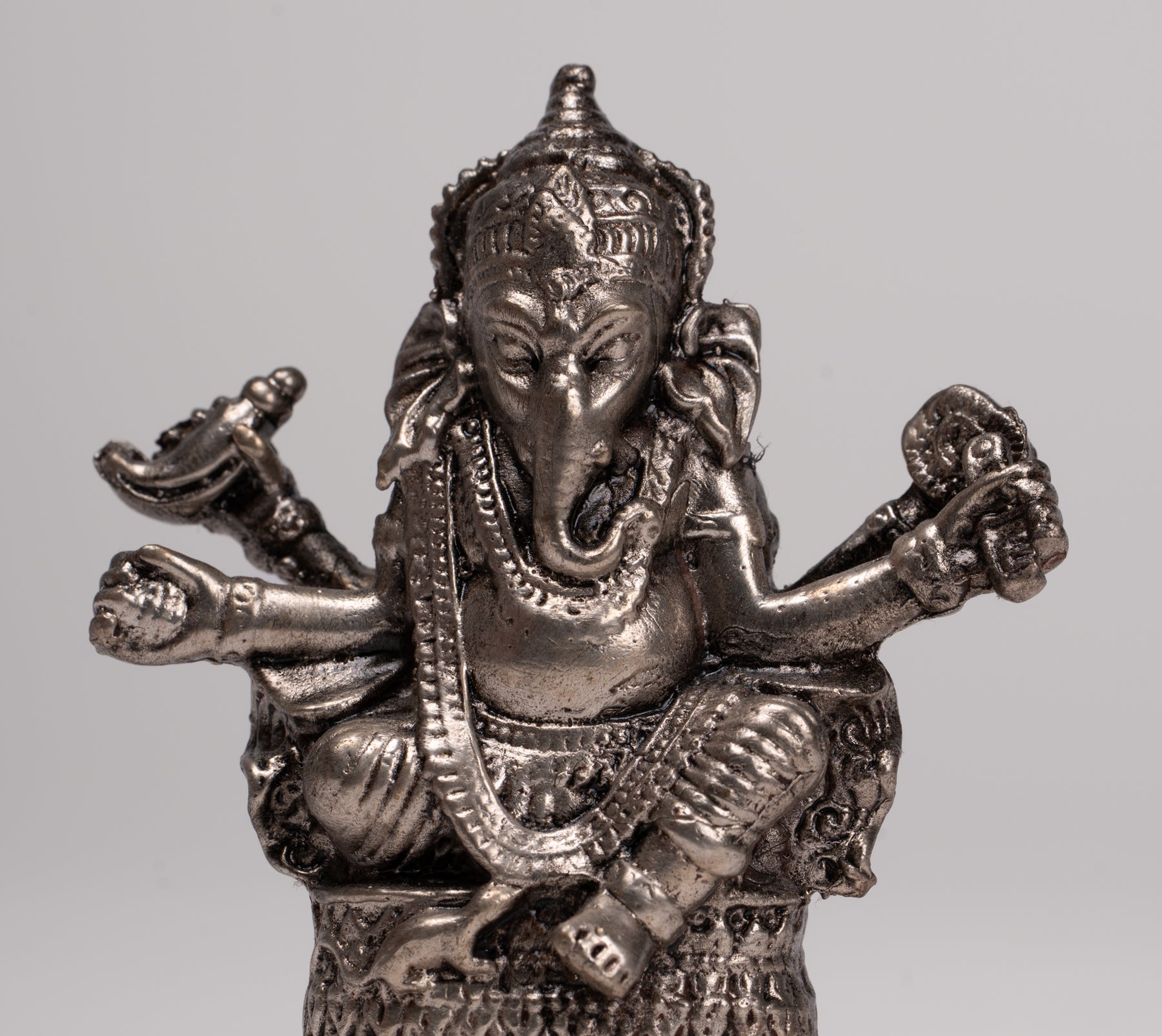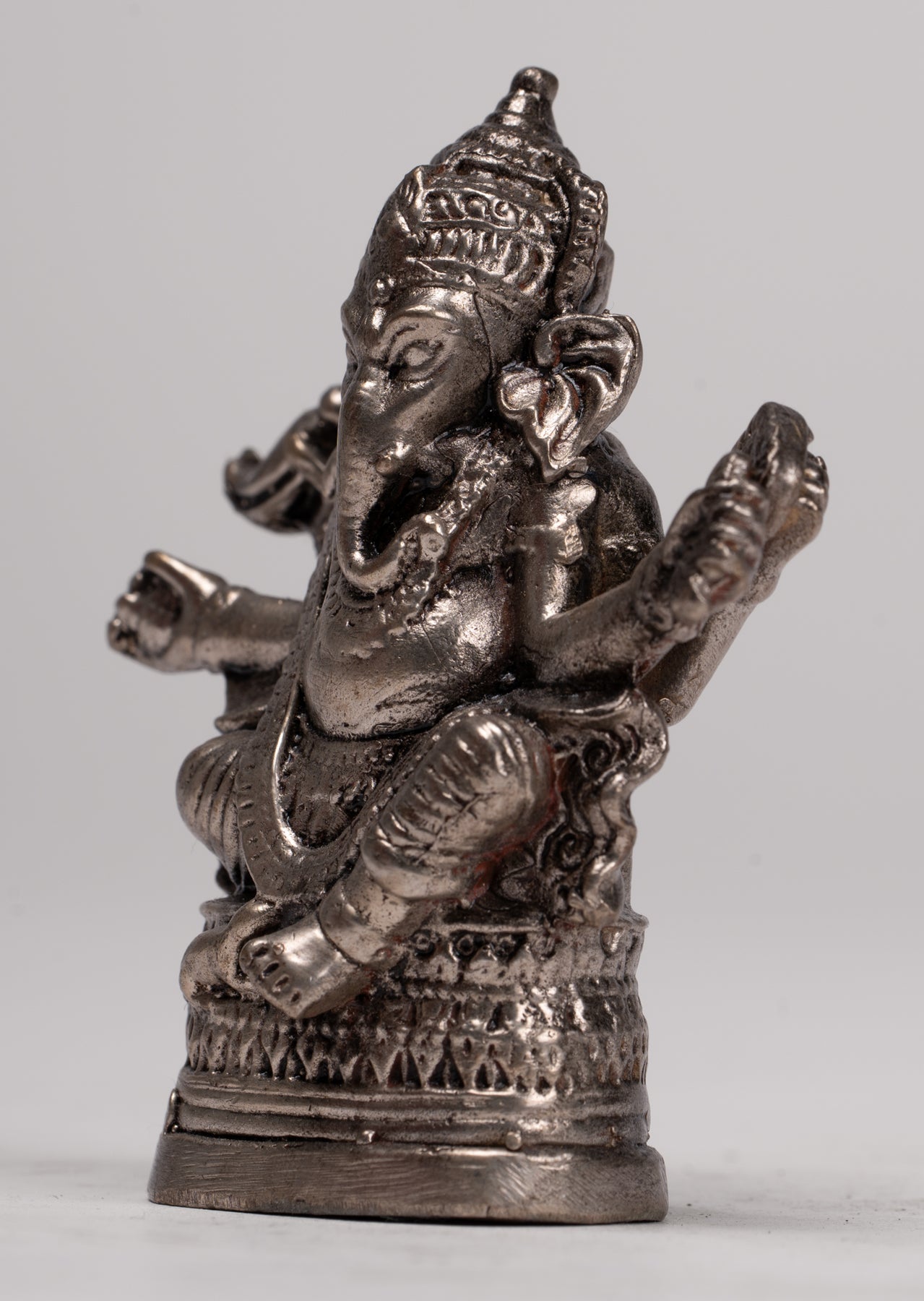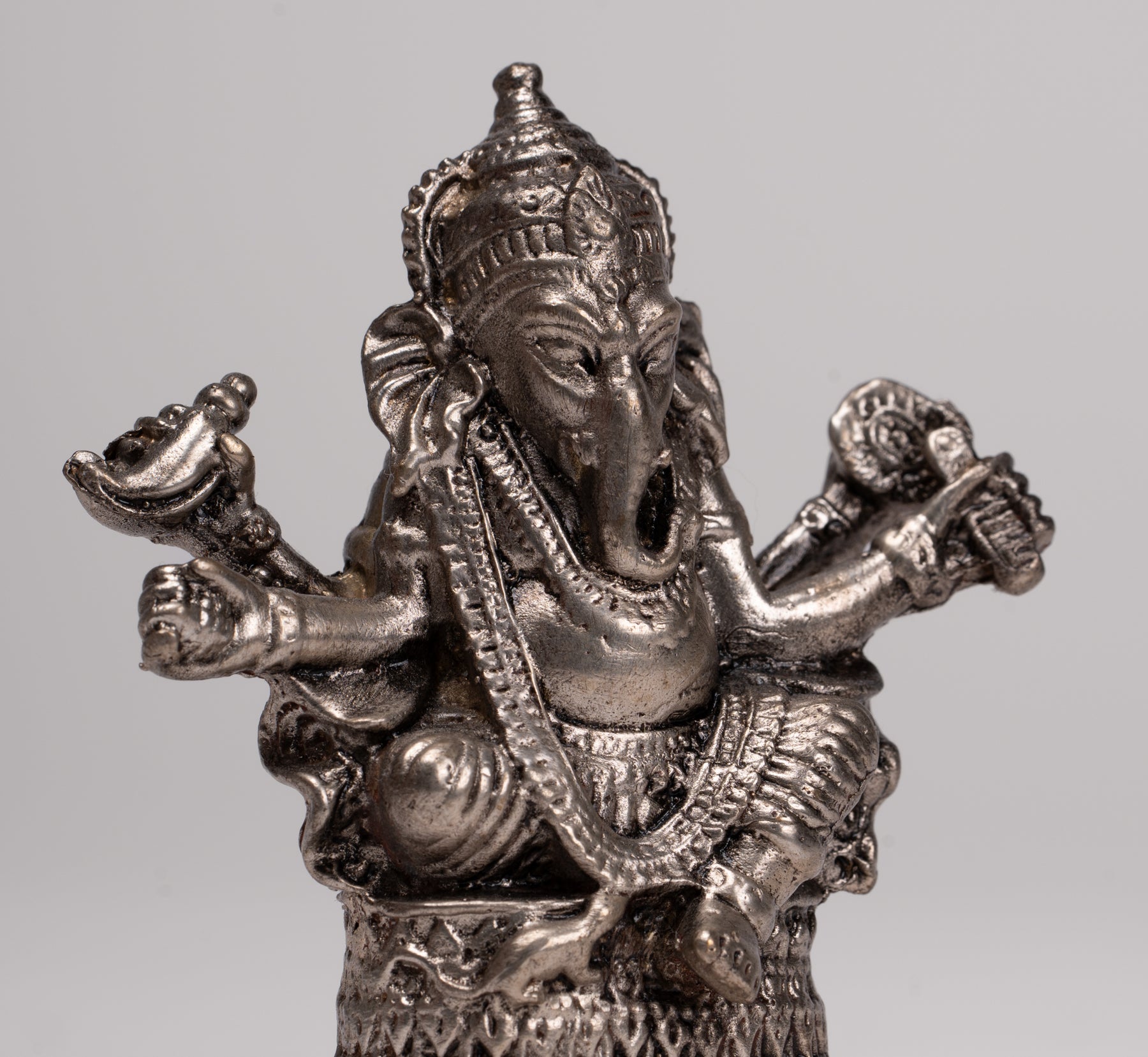 • Estatua de Ganesha - Estatua de Ganesha Silver Ganesha de estilo antiguo de bronce tailandés - 8cm/3 "