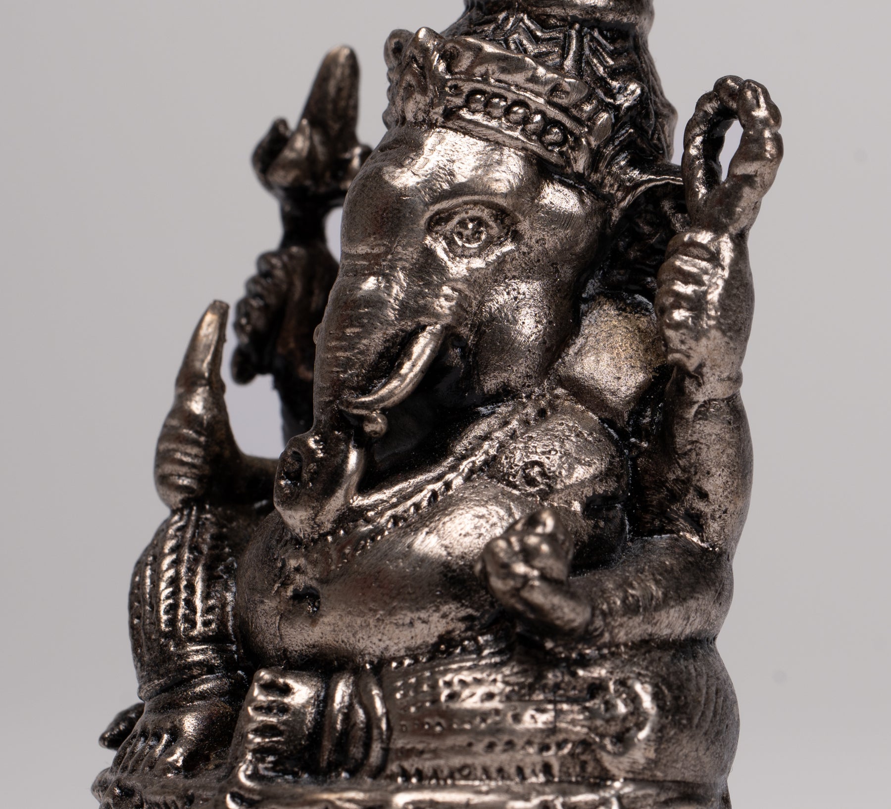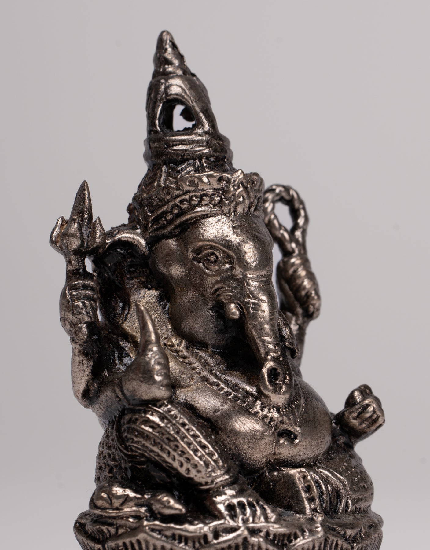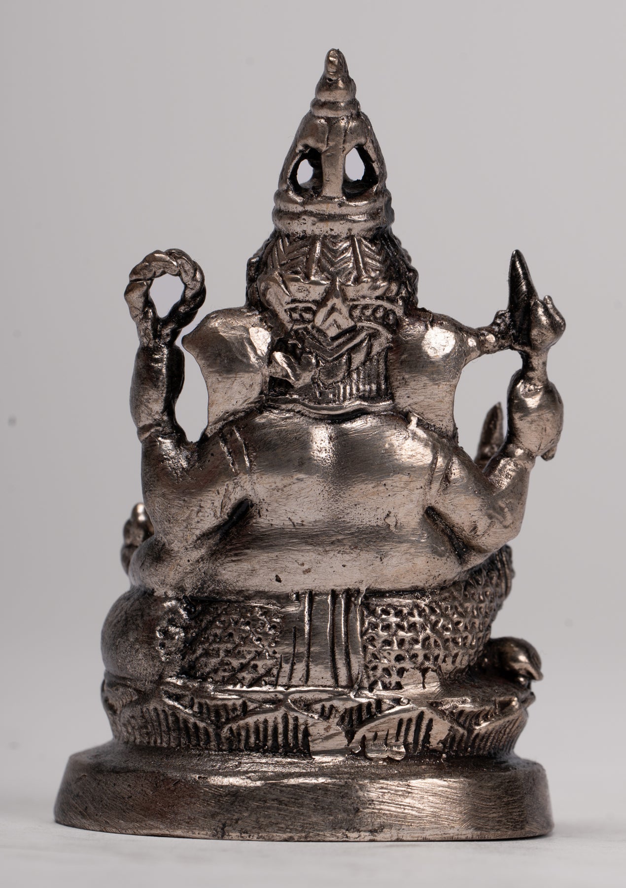 • Estatua de Ganesha - Estatua de Ganesha Silver Ganesha de estilo antiguo de bronce tailandés - 8.5 cm/3 "