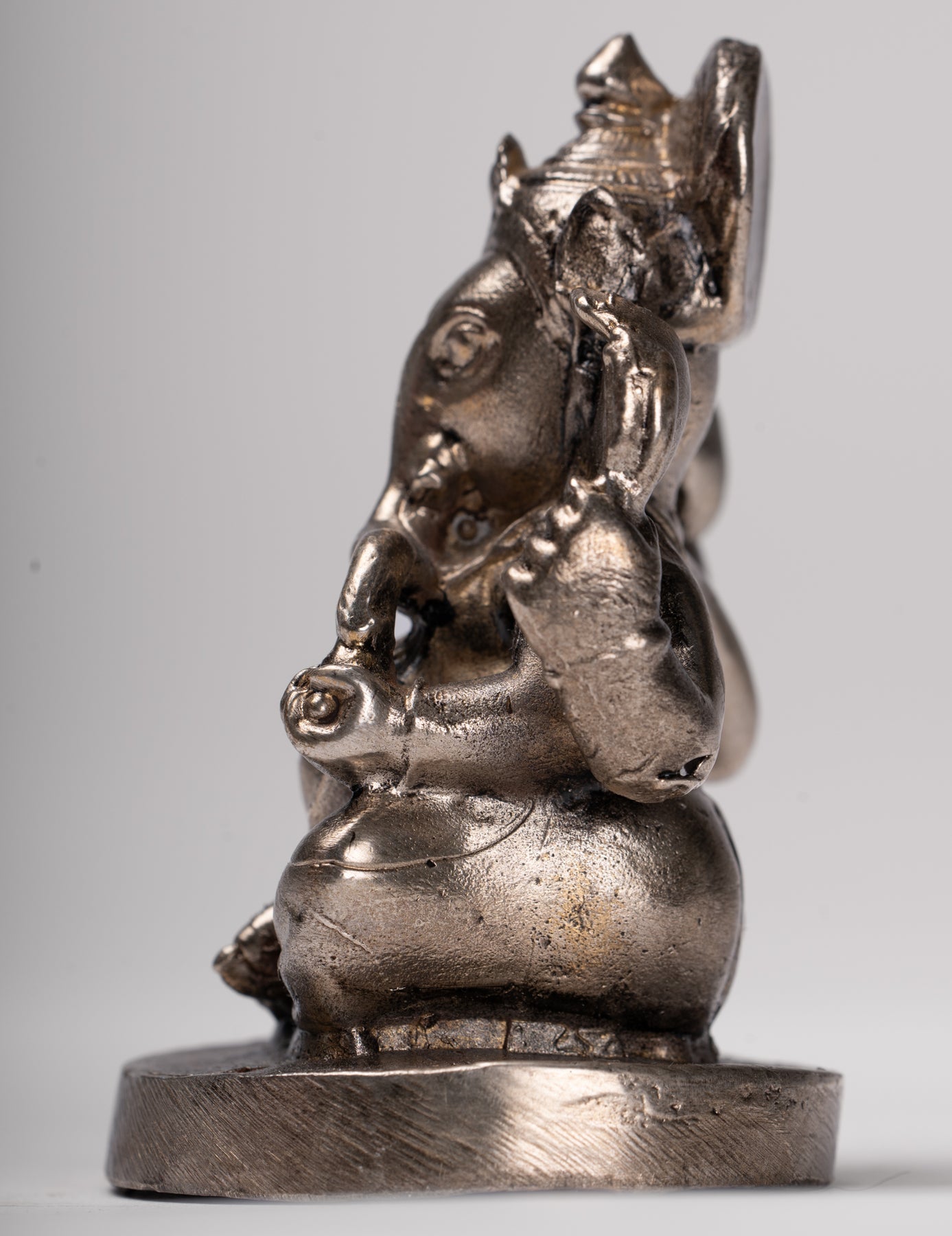 Estatua de Ganesha - Estatua de Ganesha Silver Ganesha de estilo antiguo de bronce tailandés - 8.5 cm/3 "