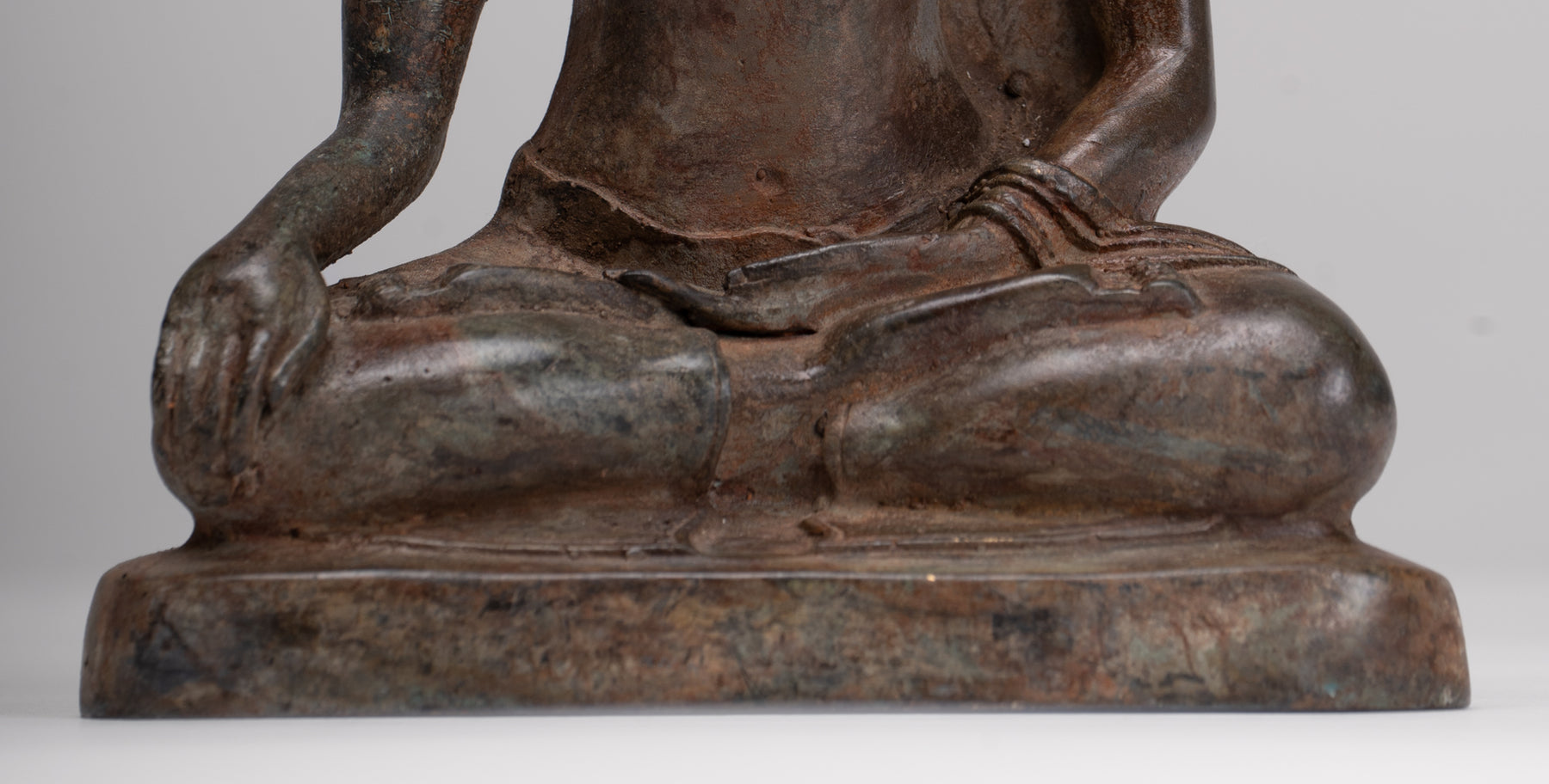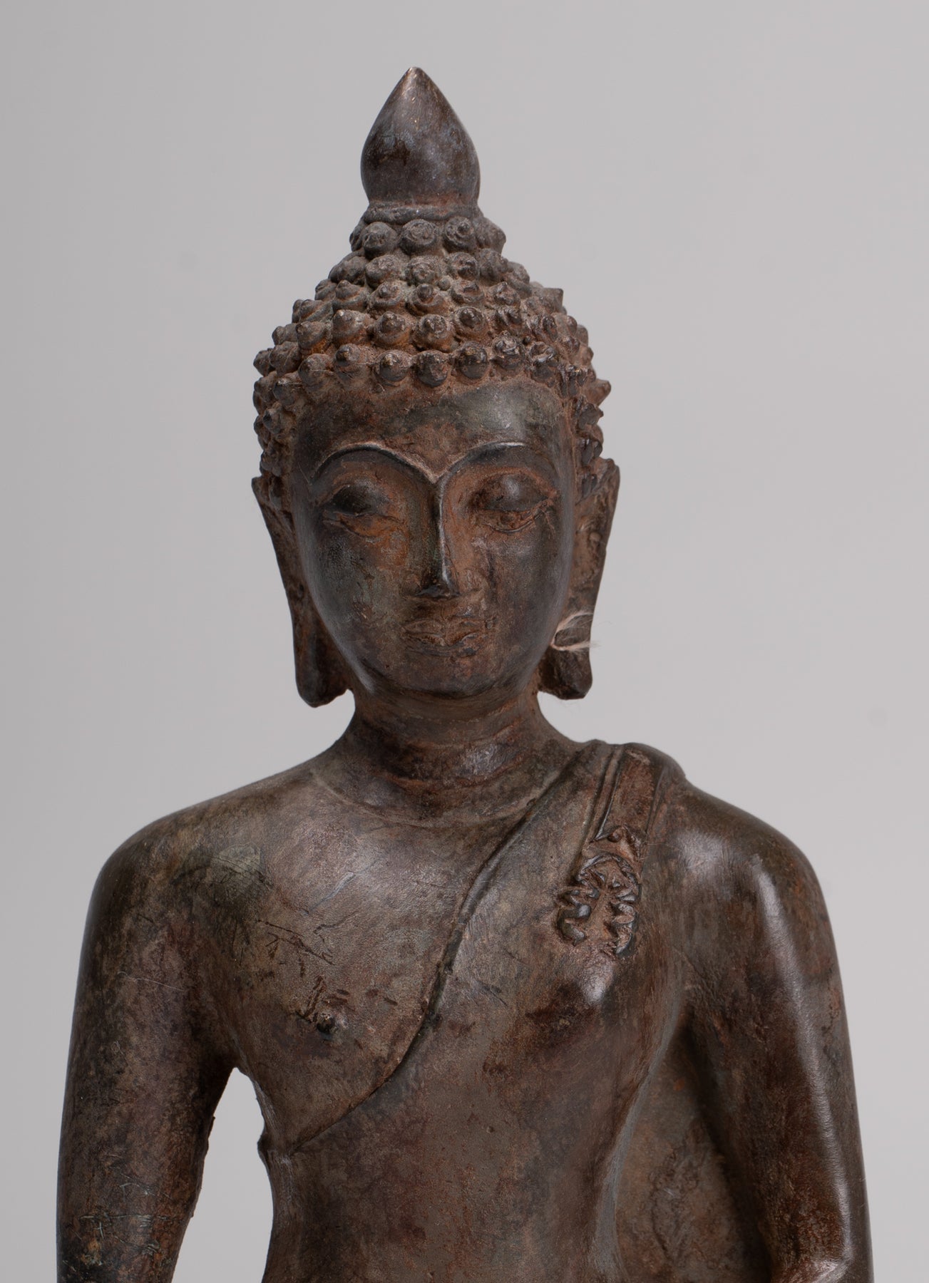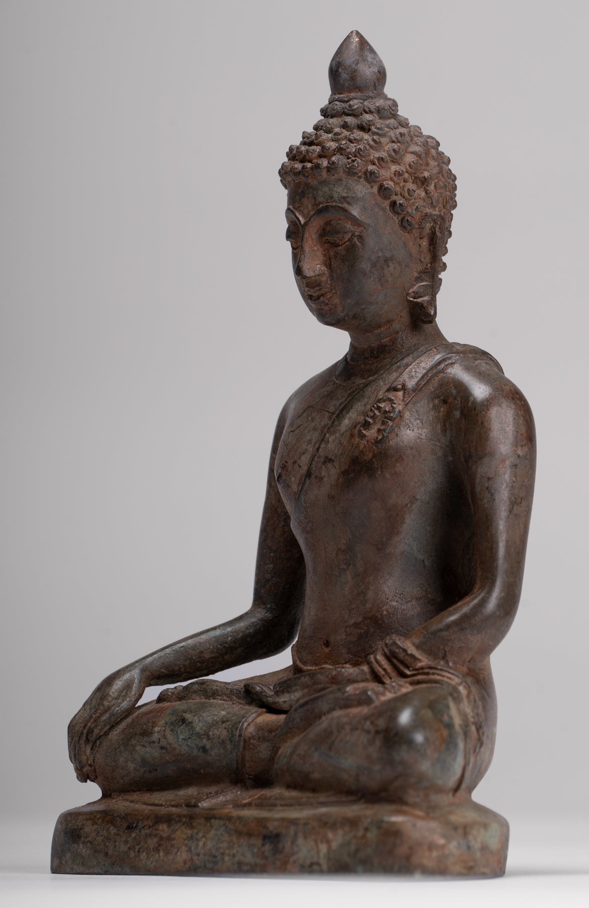 Buddha Statue - Antique Thai Style Bronze Chiang Saen Enlightenment Buddha Statue - 18cm/7"