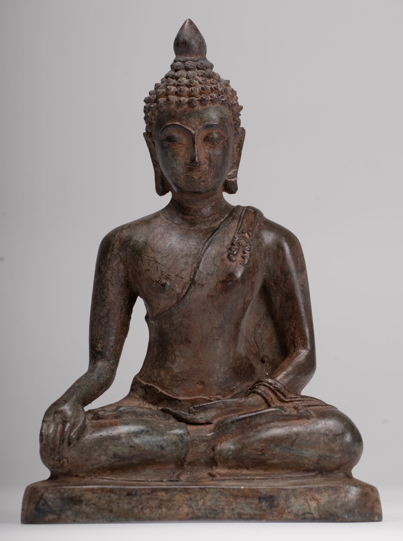 Un antiguo estilo tailandés de bronce de bronce asentado Shakyamuni en estilo Chiang Saen.