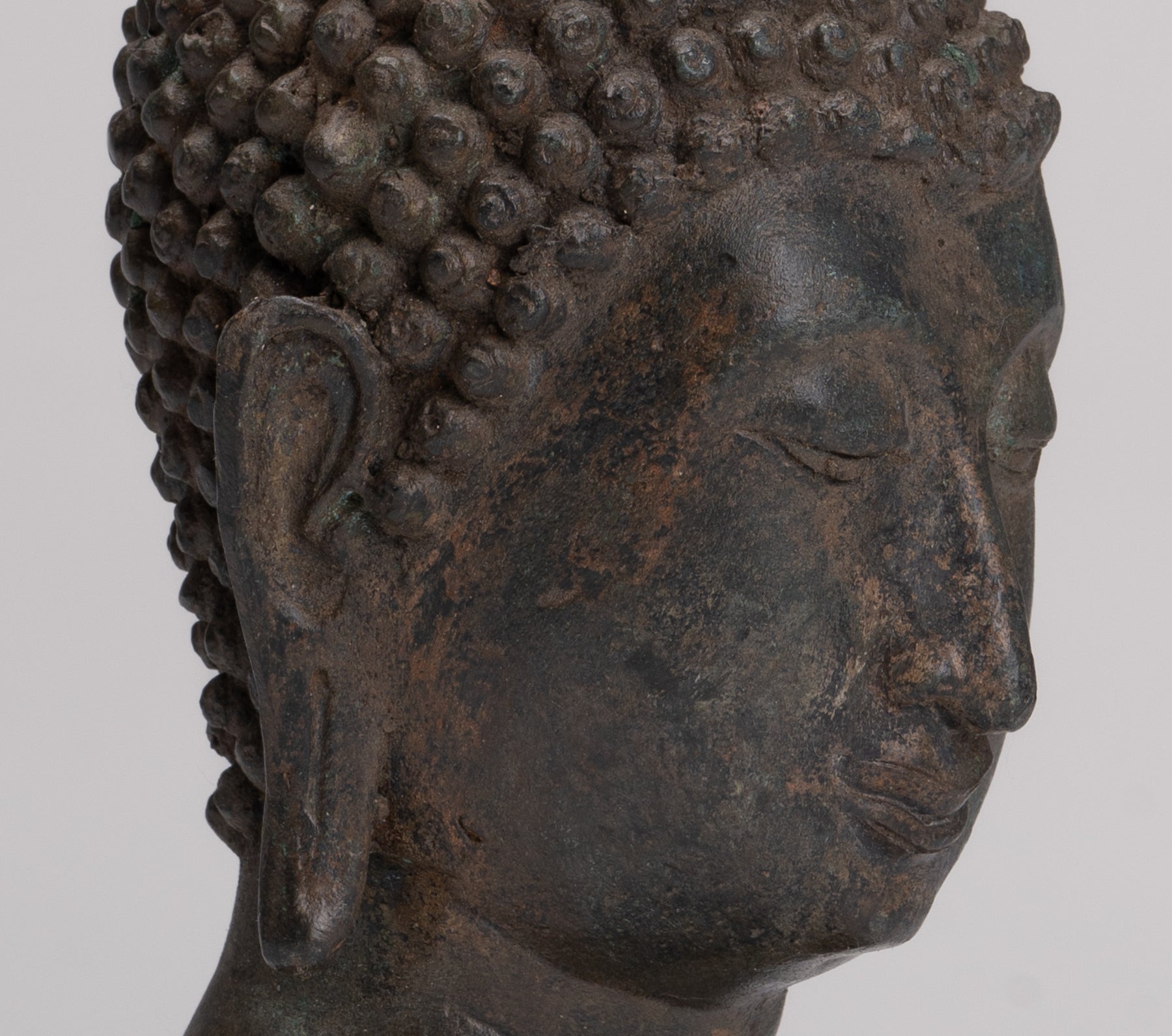 Cabeza de Buda - Estilo antiguo Thai Sukhothai Montado Bronce Buddha Head - 22cm/9 "